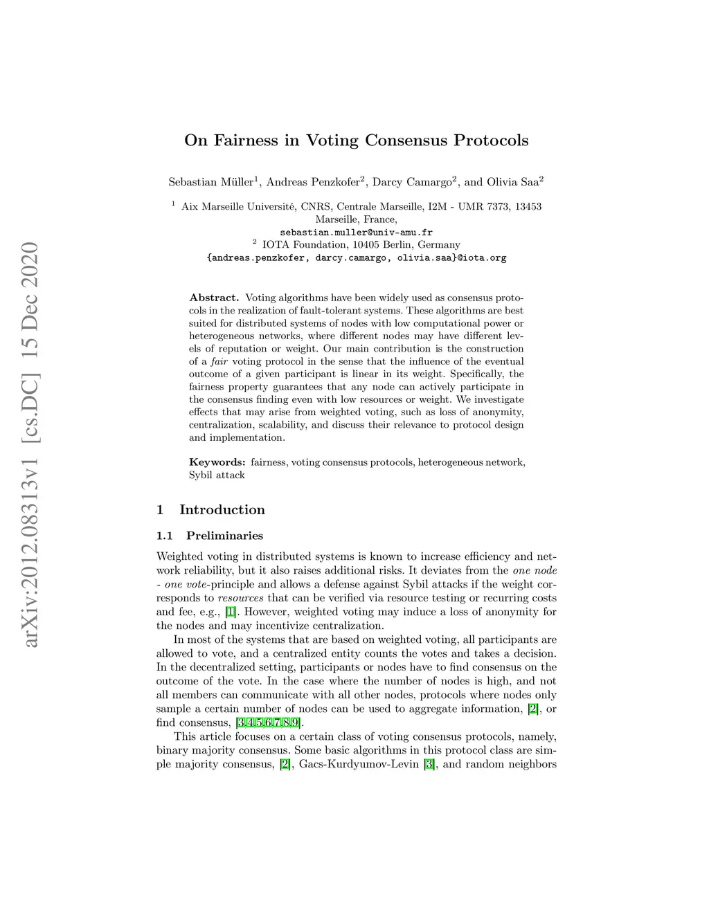 Voting algorithms have been widely used as consensus protocols in the realization of fault-tolerant systems. These algorithms are best suited for distributed systems of nodes with low computational power or heterogeneous networks, where different nodes may have different levels of reputation or weight. Our main contribution is the construction of a fair voting protocol in the sense that the influence of the eventual outcome of a given participant is linear in its weight. Specifically, the fairness property guarantees that any node can actively participate in the consensus finding even with low resources or weight. We investigate effects that may arise from weighted voting, such as loss of anonymity, centralization, scalability, and discuss their relevance to protocol design and implementation.