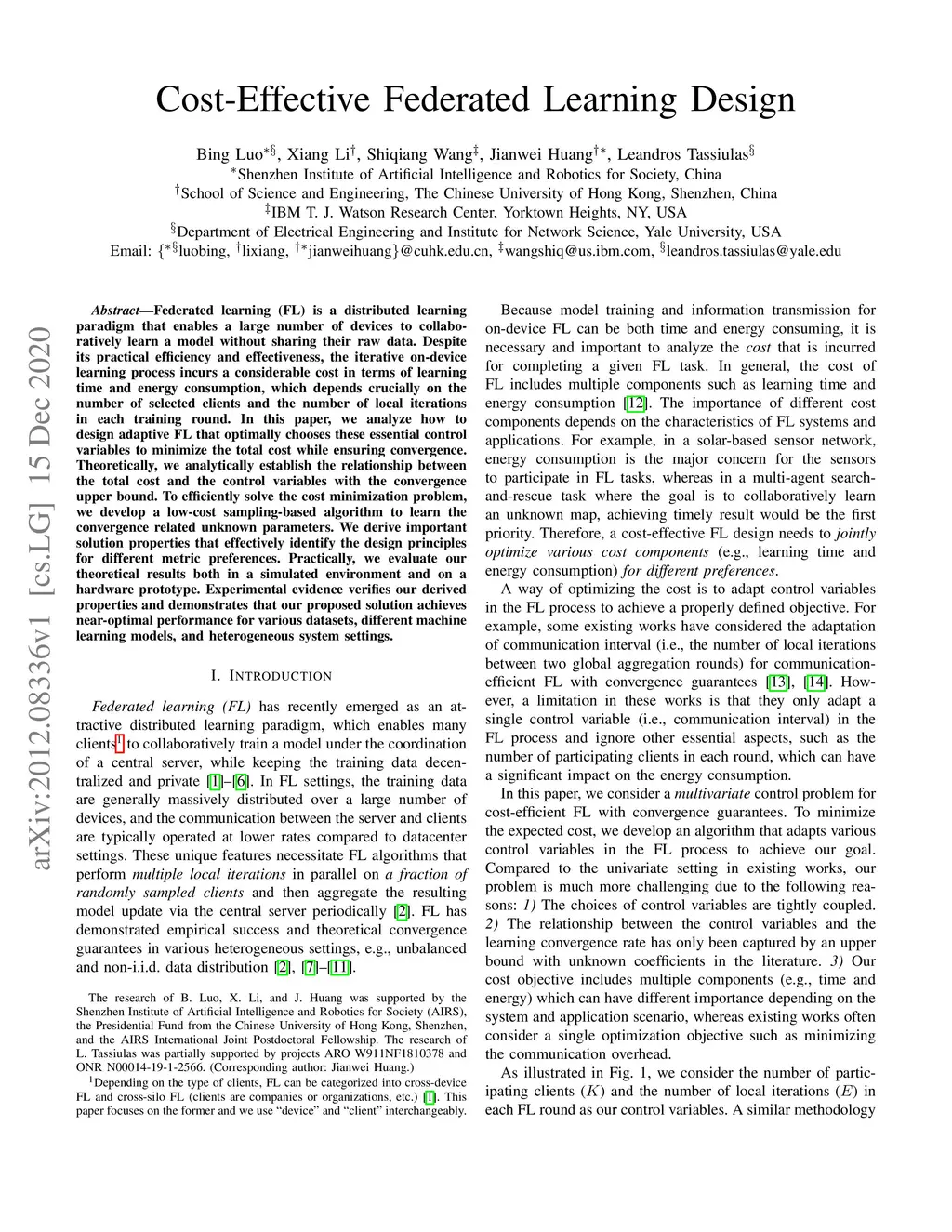 Federated learning (FL) is a distributed learning paradigm that enables a large number of devices to collaboratively learn a model without sharing their raw data. Despite its practical efficiency and effectiveness, the iterative on-device learning process incurs a considerable cost in terms of learning time and energy consumption, which depends crucially on the number of selected clients and the number of local iterations in each training round. In this paper, we analyze how to design adaptive FL that optimally chooses these essential control variables to minimize the total cost while ensuring convergence. Theoretically, we analytically establish the relationship between the total cost and the control variables with the convergence upper bound. To efficiently solve the cost minimization problem, we develop a low-cost sampling-based algorithm to learn the convergence related unknown parameters. We derive important solution properties that effectively identify the design principles for different metric preferences. Practically, we evaluate our theoretical results both in a simulated environment and on a hardware prototype. Experimental evidence verifies our derived properties and demonstrates that our proposed solution achieves near-optimal performance for various datasets, different machine learning models, and heterogeneous system settings.