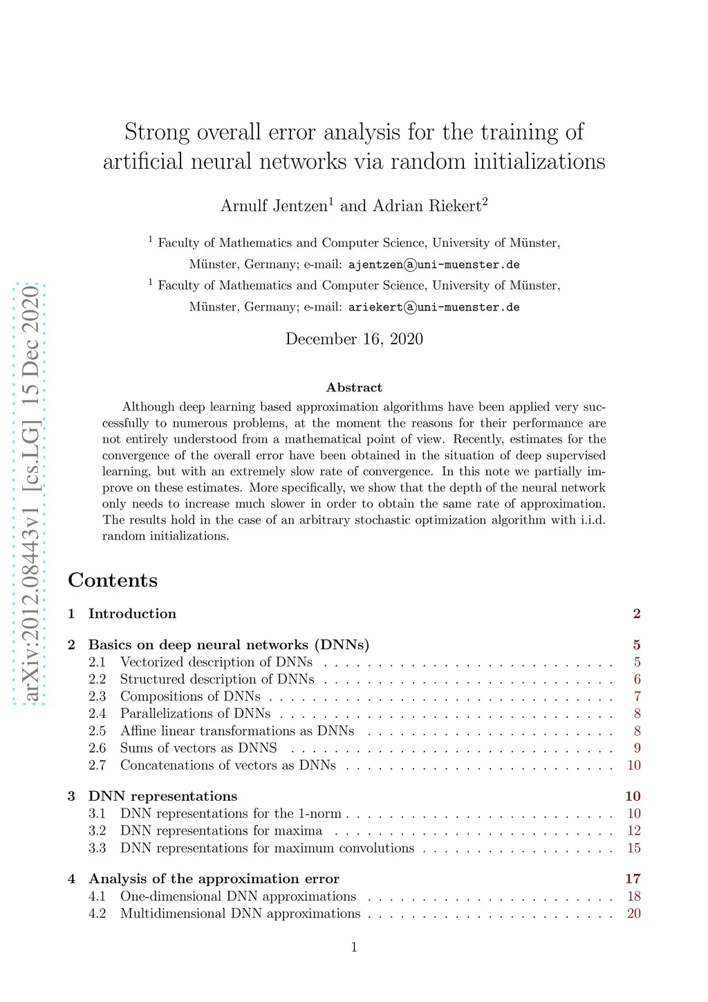 Strong overall error analysis for the training of artificial neural