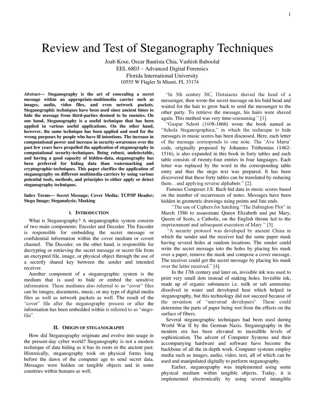Review and Test of Steganography Techniques