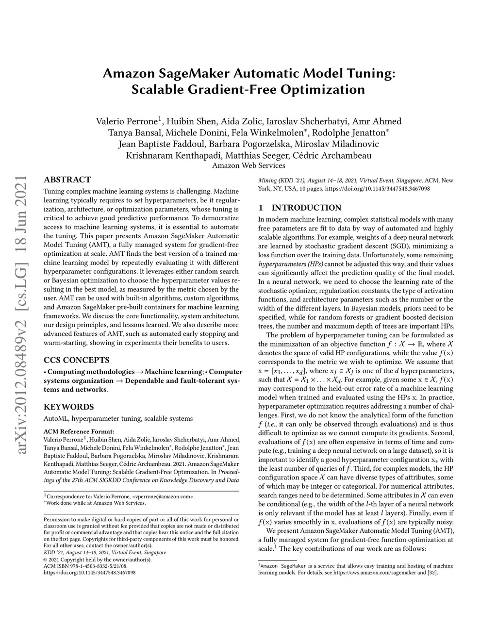 Amazon SageMaker Automatic Model Tuning: Scalable Gradient-Free