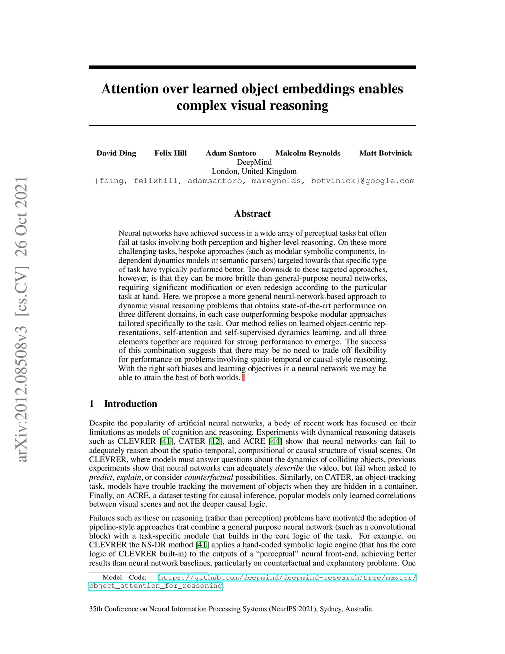 Attention over learned object embeddings enables complex visual