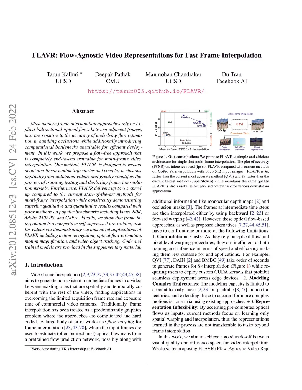 FLAVR: Flow-Agnostic Video Representations for Fast Frame Interpolation