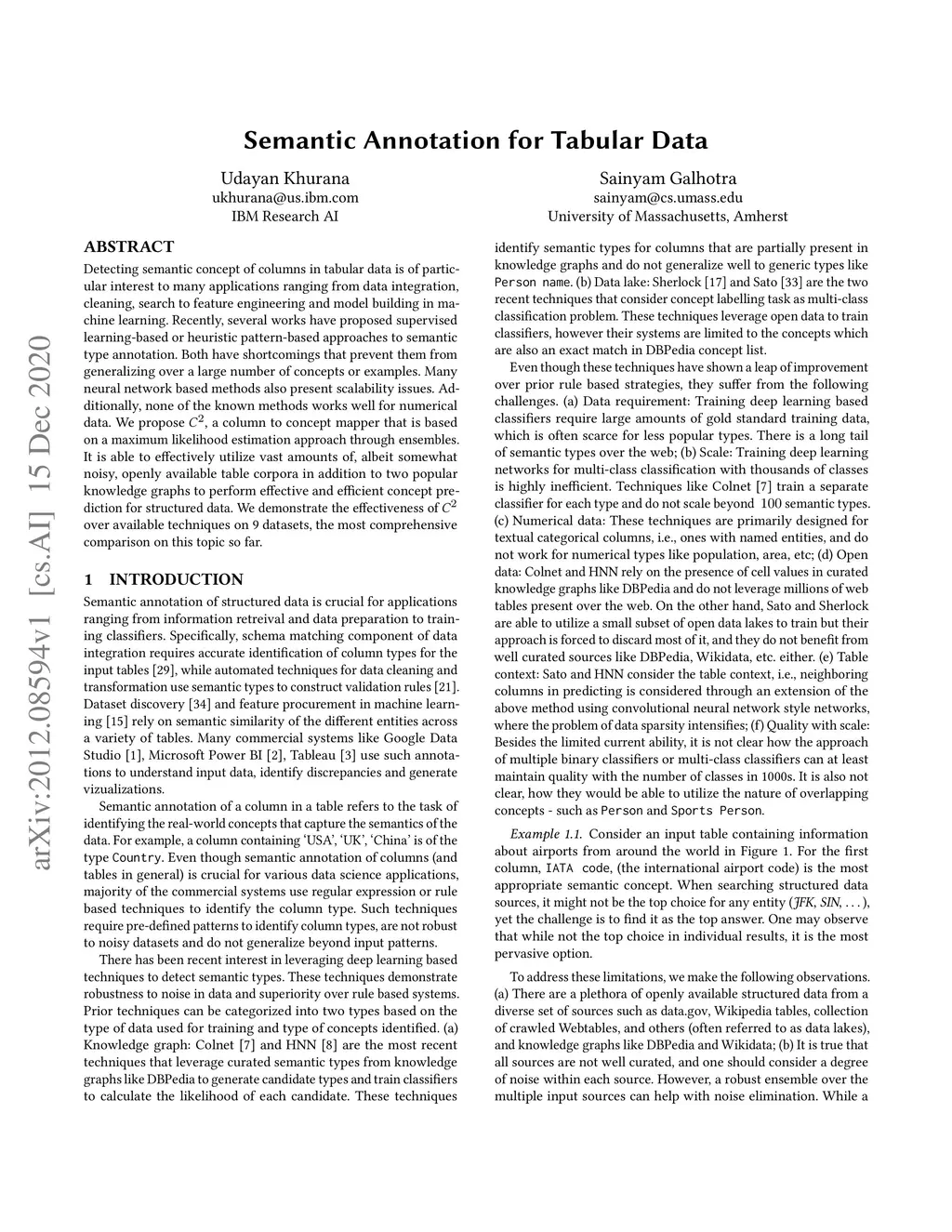 Semantic Annotation for Tabular Data