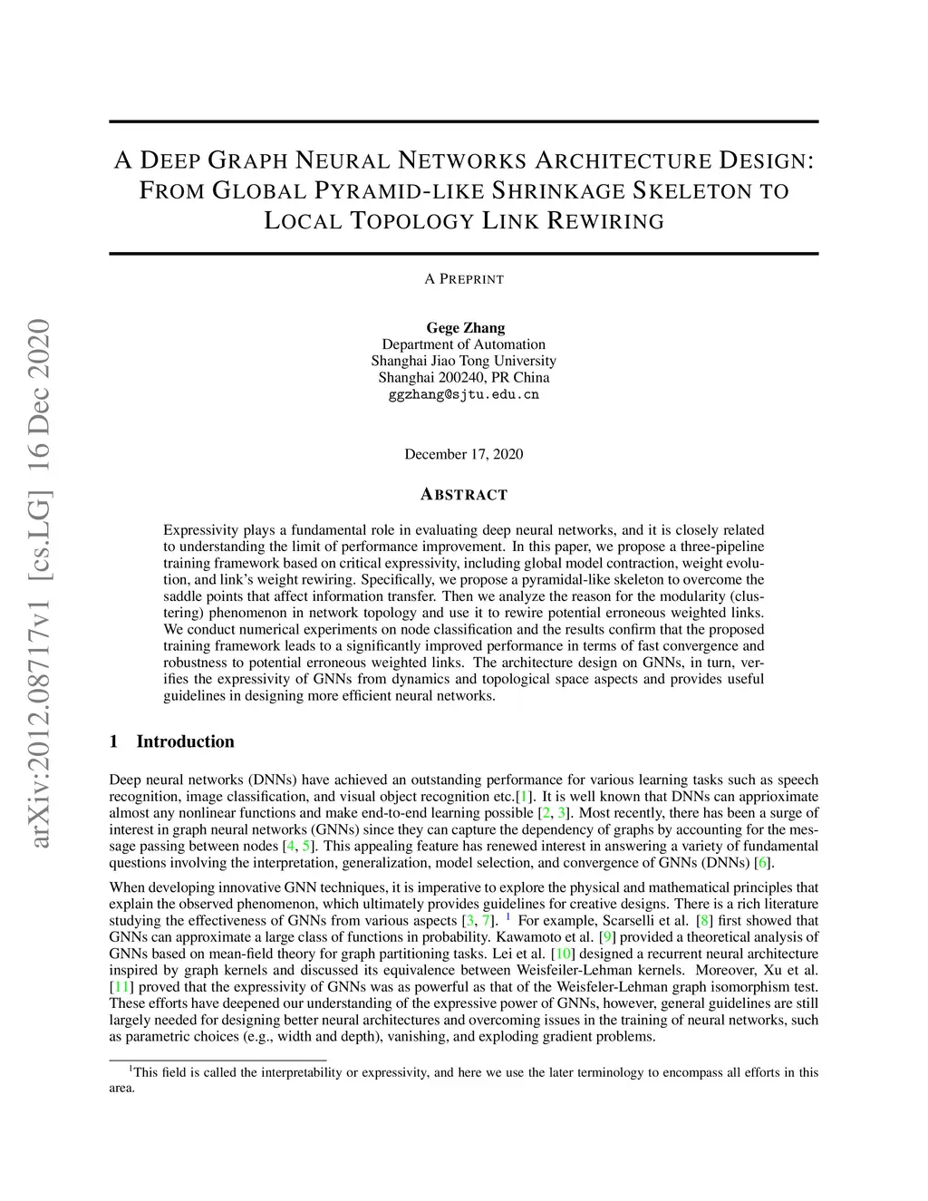 Expressivity plays a fundamental role in evaluating deep neural networks, and it is closely related to understanding the limit of performance improvement. In this paper, we propose a three-pipeline training framework based on critical expressivity, including global model contraction, weight evolution, and link's weight rewiring. Specifically, we propose a pyramidal-like skeleton to overcome the saddle points that affect information transfer. Then we analyze the reason for the modularity (clustering) phenomenon in network topology and use it to rewire potential erroneous weighted links. We conduct numerical experiments on node classification and the results confirm that the proposed training framework leads to a significantly improved performance in terms of fast convergence and robustness to potential erroneous weighted links. The architecture design on GNNs, in turn, verifies the expressivity of GNNs from dynamics and topological space aspects and provides useful guidelines in designing more efficient neural networks.