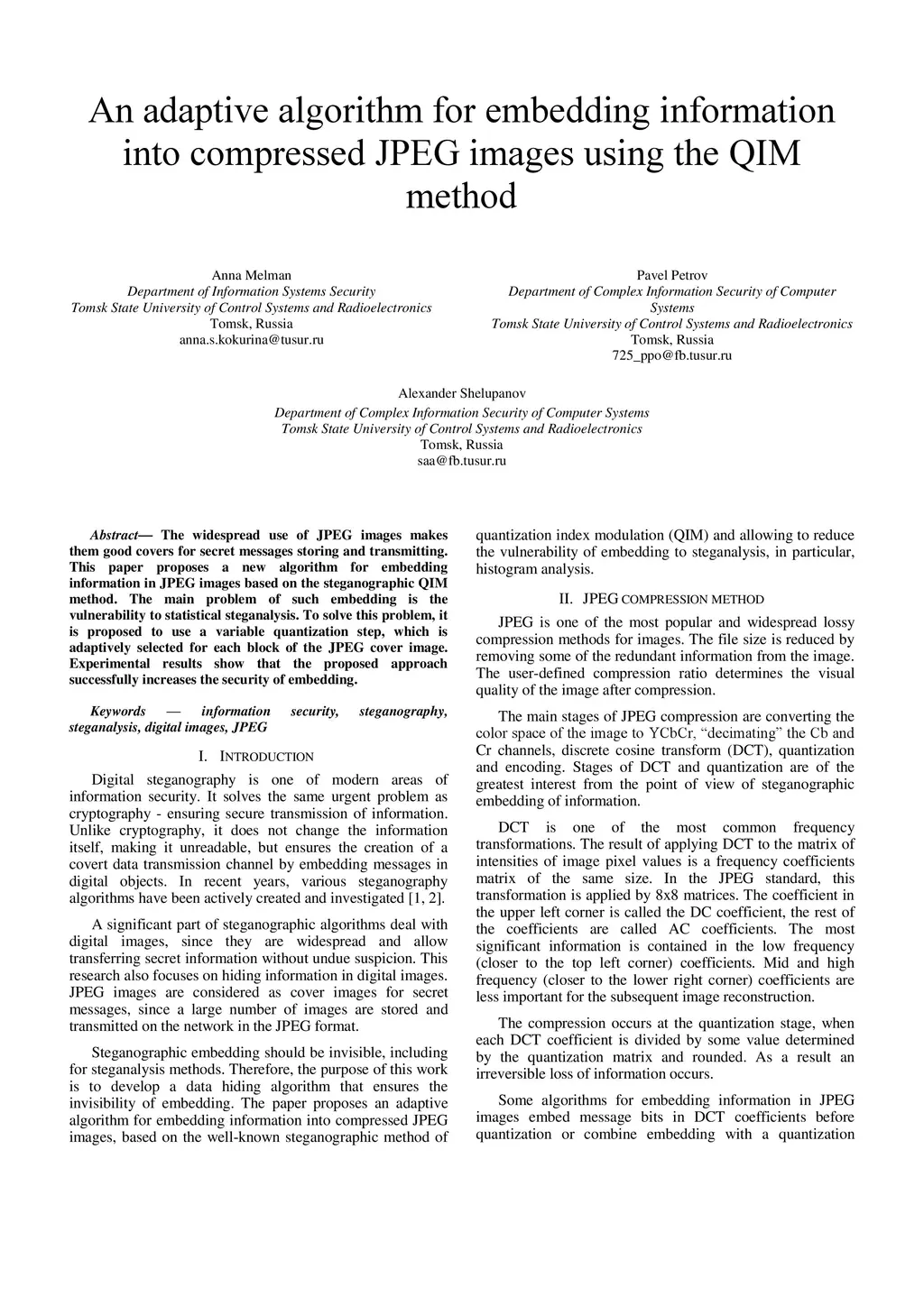 The widespread use of JPEG images makes them good covers for secret messages storing and transmitting. This paper proposes a new algorithm for embedding information in JPEG images based on the steganographic QIM method. The main problem of such embedding is the vulnerability to statistical steganalysis. To solve this problem, it is proposed to use a variable quantization step, which is adaptively selected for each block of the JPEG cover image. Experimental results show that the proposed approach successfully increases the security of embedding.