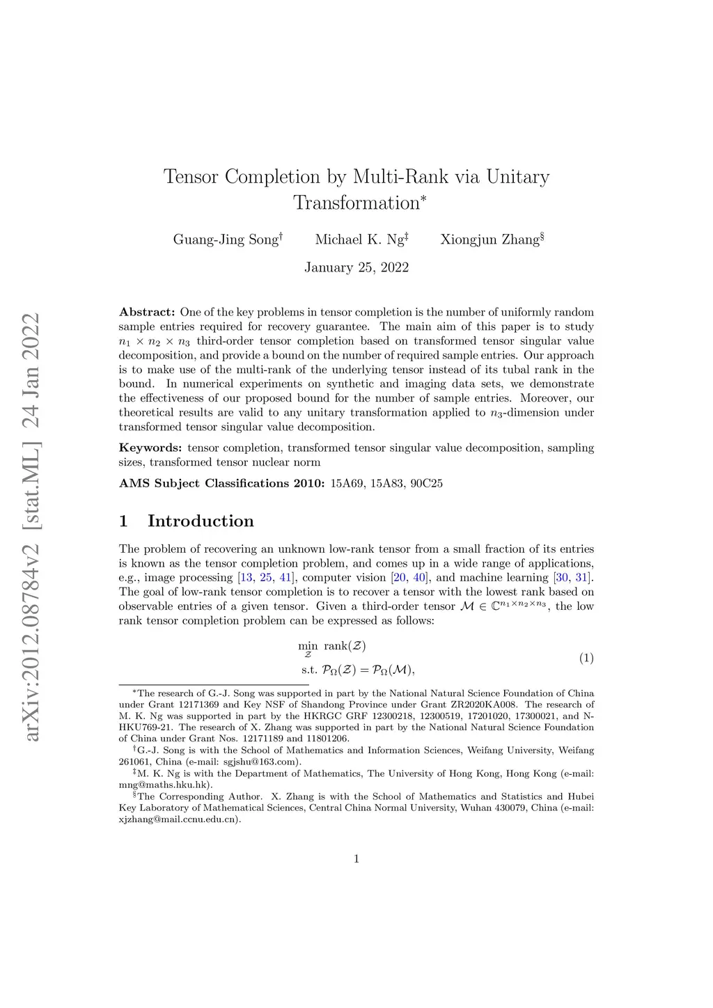Entries for Tensor Completion via Unitary