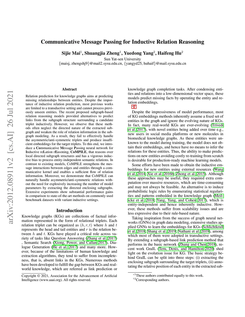 Communicative Message Passing for Inductive Relation Reasoning
