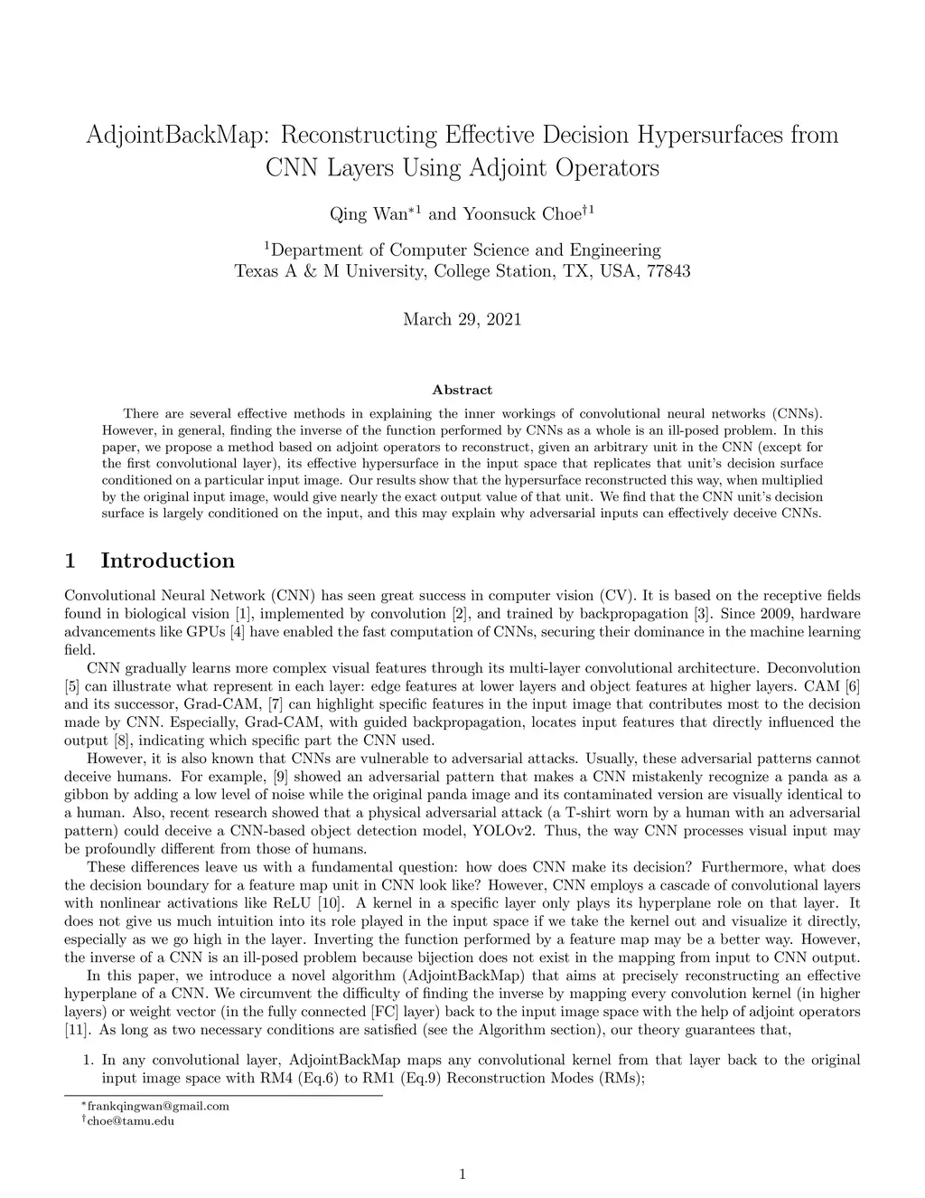 AdjointBackMap: Reconstructing Effective Decision Hypersurfaces from CNN