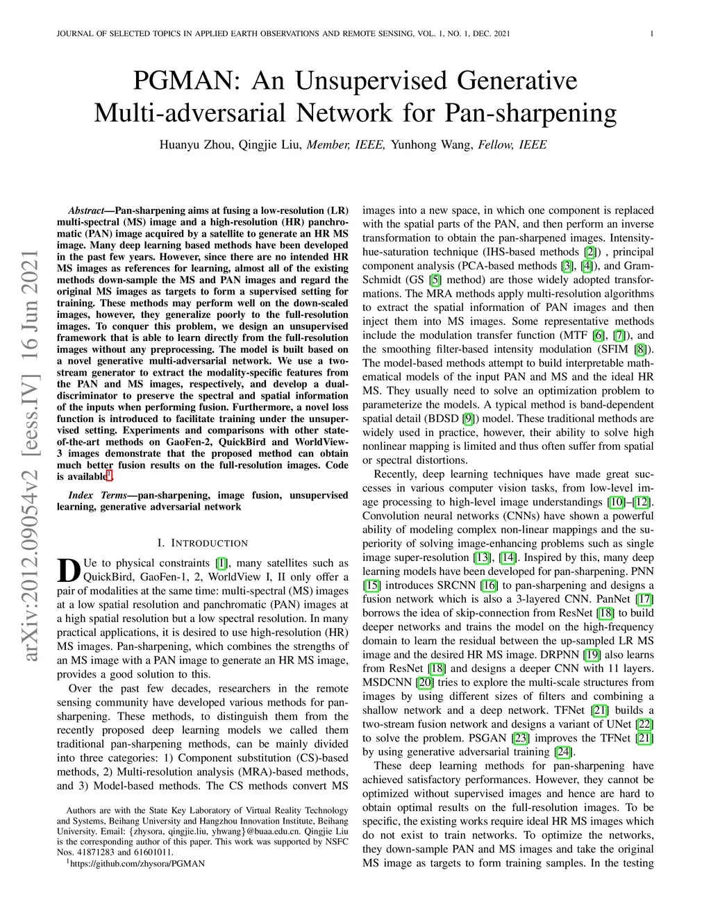 Pan-sharpening aims at fusing a low-resolution (LR) multi-spectral (MS) image and a high-resolution (HR) panchromatic (PAN) image acquired by a satellite to generate an HR MS image. Many deep learning based methods have been developed in the past few years. However, since there are no intended HR MS images as references for learning, almost all of the existing methods down-sample the MS and PAN images and regard the original MS images as targets to form a supervised setting for training. These methods may perform well on the down-scaled images, however, they generalize poorly to the full-resolution images. To conquer this problem, we design an unsupervised framework that is able to learn directly from the full-resolution images without any preprocessing. The model is built based on a novel generative multi-adversarial network. We use a two-stream generator to extract the modality-specific features from the PAN and MS images, respectively, and develop a dual-discriminator to preserve the spectral and spatial information of the inputs when performing fusion. Furthermore, a novel loss function is introduced to facilitate training under the unsupervised setting. Experiments and comparisons with other state-of-the-art methods on GaoFen-2 and QuickBird images demonstrate that the proposed method can obtain much better fusion results on the full-resolution images.