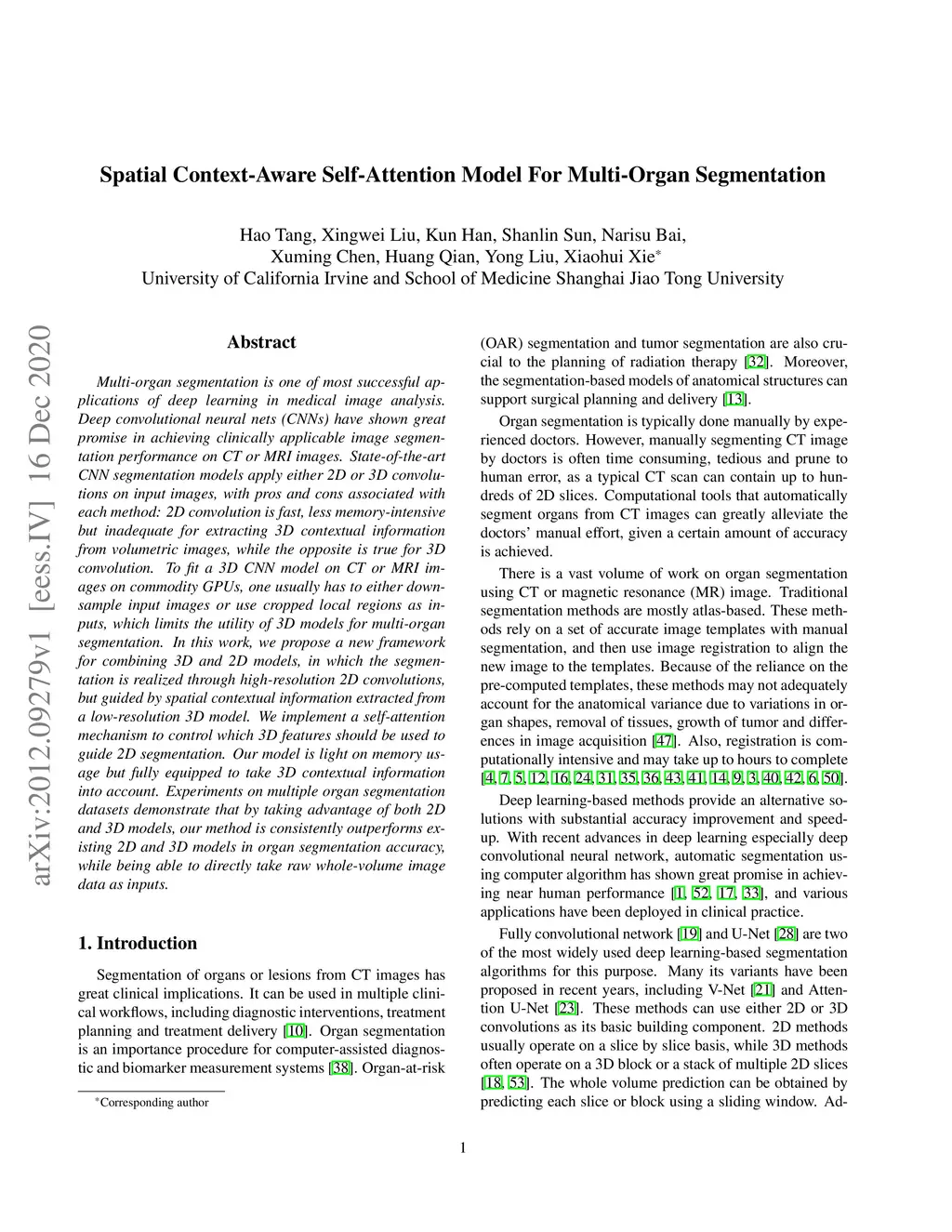 Spatial Context-Aware Self-Attention Model For Multi-Organ Segmentation