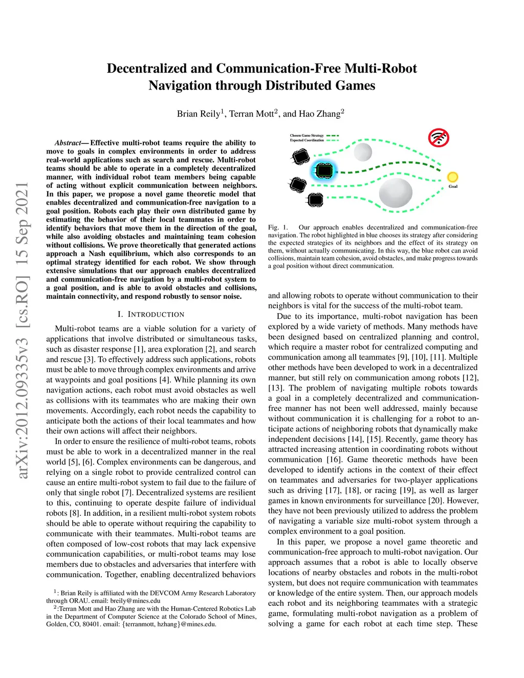 Decentralized and Communication-Free Multi-Robot Navigation through