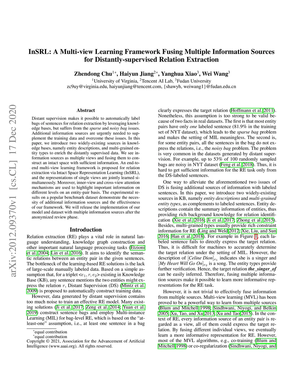 InSRL: A Multi-view Learning Framework Fusing Multiple Information