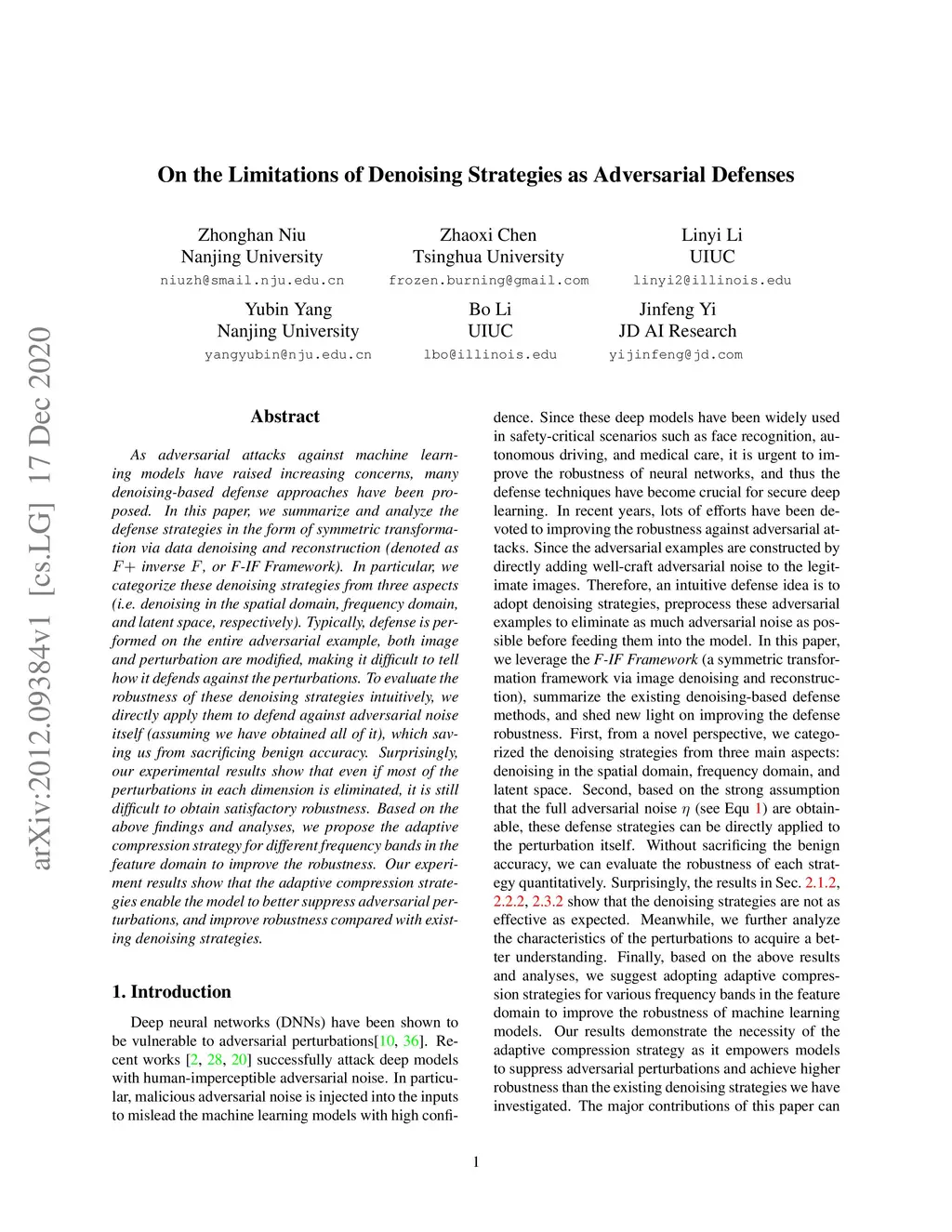 As adversarial attacks against machine learning models have raised increasing concerns, many denoising-based defense approaches have been proposed. In this paper, we summarize and analyze the defense strategies in the form of symmetric transformation via data denoising and reconstruction (denoted as inverse , Framework). In particular, we categorize these denoising strategies from three aspects (i.e. denoising in the spatial domain, frequency domain, and latent space, respectively). Typically, defense is performed on the entire adversarial example, both image and perturbation are modified, making it difficult to tell how it defends against the perturbations. To evaluate the robustness of these denoising strategies intuitively, we directly apply them to defend against adversarial noise itself (assuming we have obtained all of it), which saving us from sacrificing benign accuracy. Surprisingly, our experimental results show that even if most of the perturbations in each dimension is eliminated, it is still difficult to obtain satisfactory robustness. Based on the above findings and analyses, we propose the adaptive compression strategy for different frequency bands in the feature domain to improve the robustness. Our experiment results show that the adaptive compression strategies enable the model to better suppress adversarial perturbations, and improve robustness compared with existing denoising strategies.