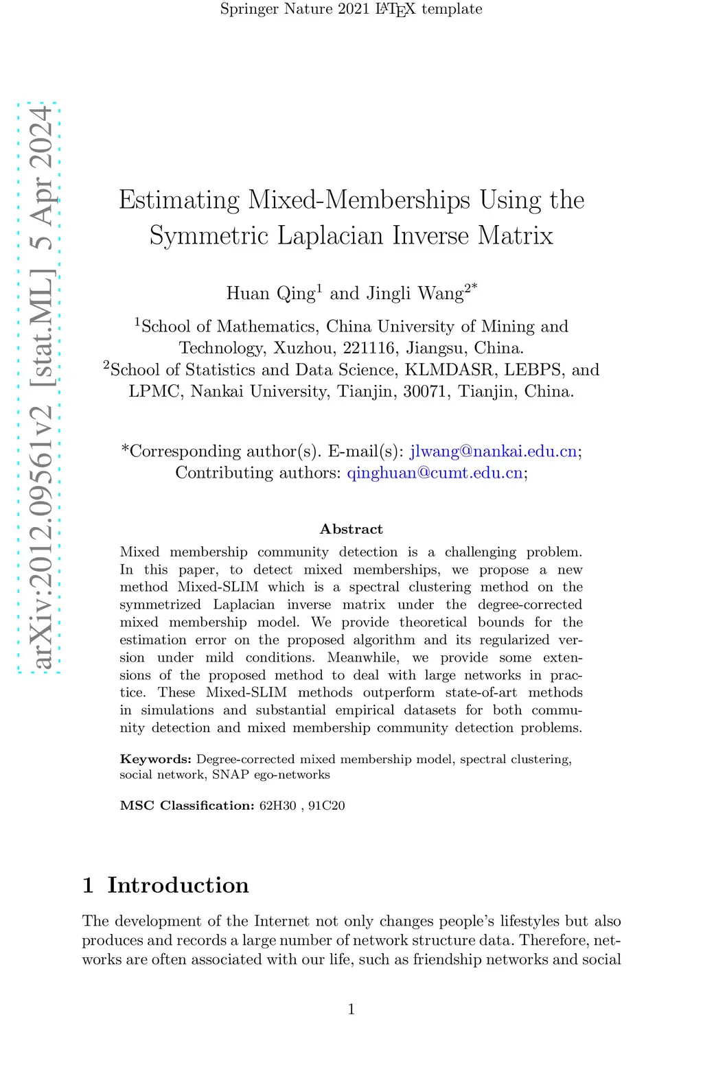 Journal of the Korean Statistical Society (JKSS), 2020