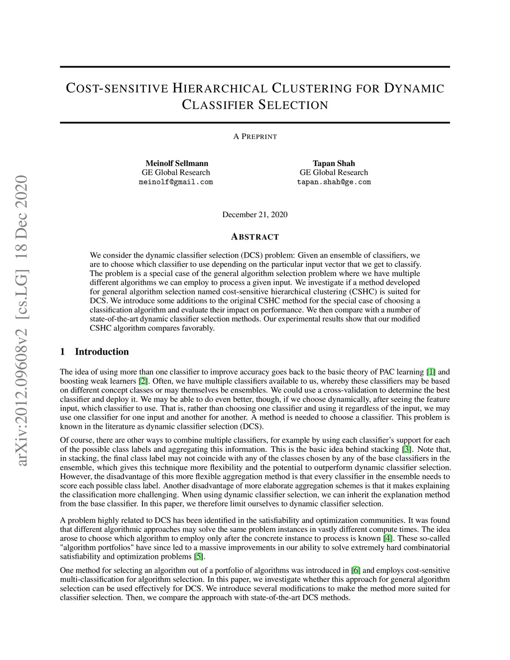 Cost-sensitive Hierarchical Clustering for Dynamic Classifier Selection