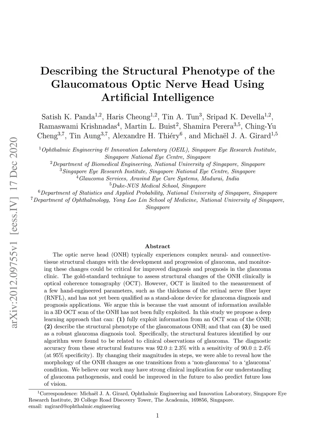The optic nerve head (ONH) typically experiences complex neural- and connective-tissue structural changes with the development and progression of glaucoma, and monitoring these changes could be critical for improved diagnosis and prognosis in the glaucoma clinic. The gold-standard technique to assess structural changes of the ONH clinically is optical coherence tomography (OCT). However, OCT is limited to the measurement of a few hand-engineered parameters, such as the thickness of the retinal nerve fiber layer (RNFL), and has not yet been qualified as a stand-alone device for glaucoma diagnosis and prognosis applications. We argue this is because the vast amount of information available in a 3D OCT scan of the ONH has not been fully exploited. In this study we propose a deep learning approach that can: \textbf{(1)} fully exploit information from an OCT scan of the ONH; \textbf{(2)} describe the structural phenotype of the glaucomatous ONH; and that can \textbf{(3)} be used as a robust glaucoma diagnosis tool. Specifically, the structural features identified by our algorithm were found to be related to clinical observations of glaucoma. The diagnostic accuracy from these structural features was with a sensitivity of $90.0 \pm 2.4 \% $ (at specificity). By changing their magnitudes in steps, we were able to reveal how the morphology of the ONH changes as one transitions from a `non-glaucoma' to a `glaucoma' condition. We believe our work may have strong clinical implication for our understanding of glaucoma pathogenesis, and could be improved in the future to also predict future loss of vision.