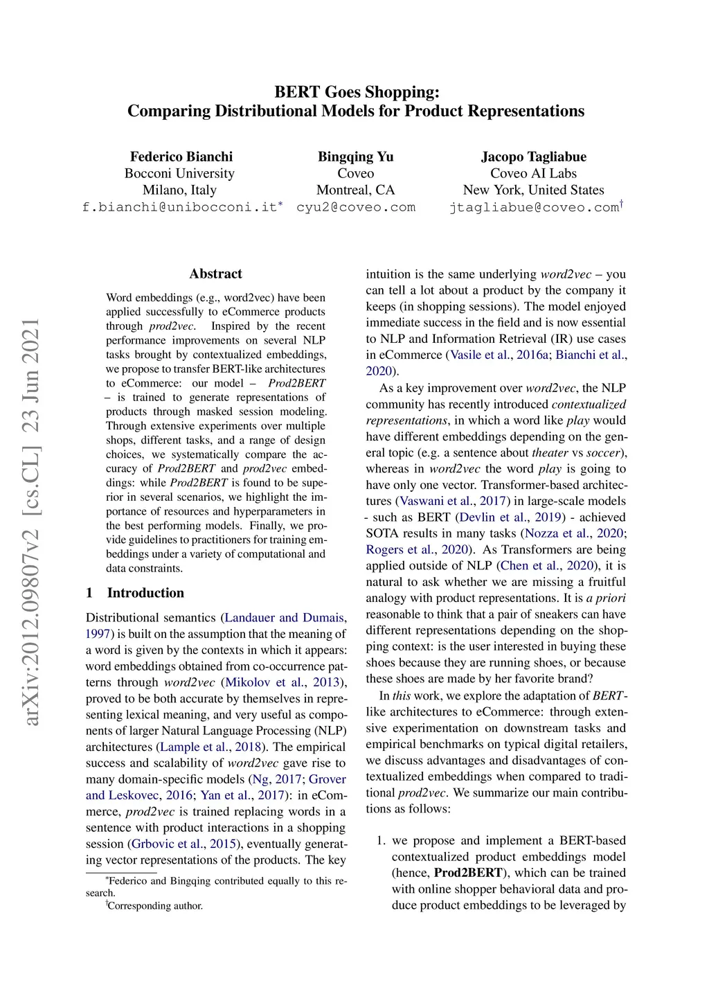 BERT Goes Shopping: Comparing Distributional Models for Product