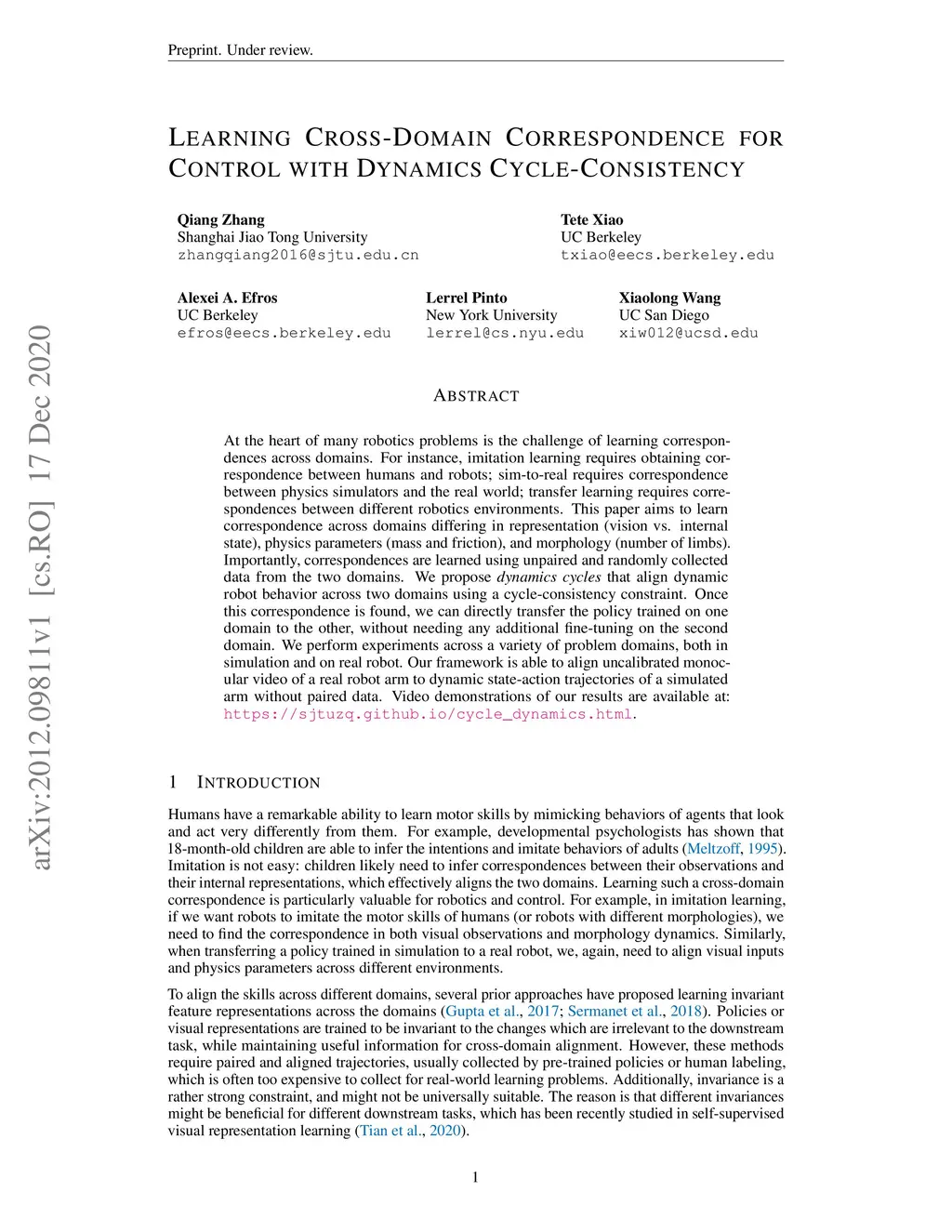 Learning Cross-Domain Correspondence for Control with Dynamics