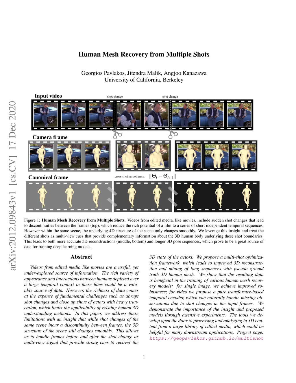 Human Mesh Recovery from Multiple Shots