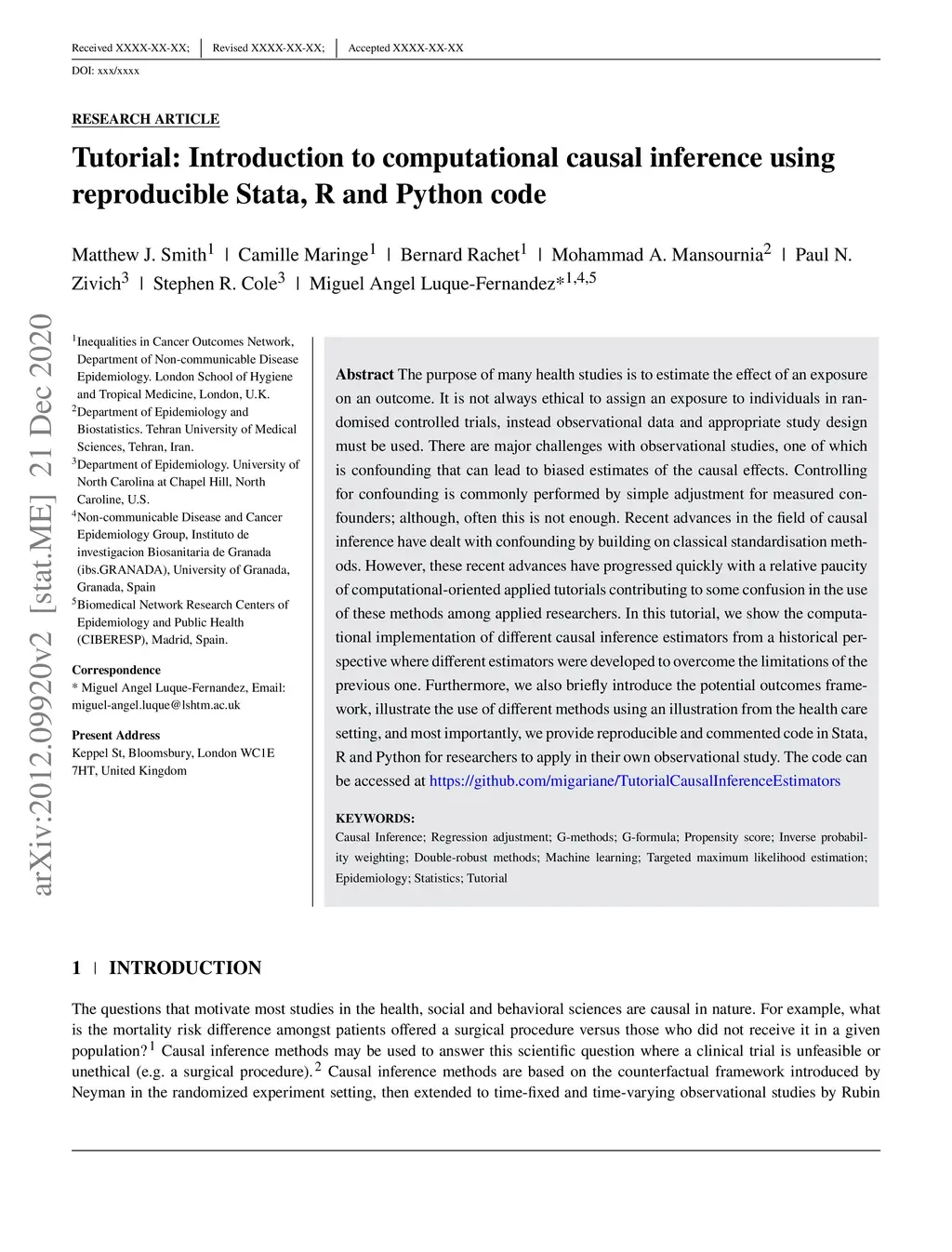 The purpose of many health studies is to estimate the effect of an exposure on an outcome. It is not always ethical to assign an exposure to individuals in randomised controlled trials, instead observational data and appropriate study design must be used. There are major challenges with observational studies, one of which is confounding that can lead to biased estimates of the causal effects. Controlling for confounding is commonly performed by simple adjustment for measured confounders; although, often this is not enough. Recent advances in the field of causal inference have dealt with confounding by building on classical standardisation methods. However, these recent advances have progressed quickly with a relative paucity of computational-oriented applied tutorials contributing to some confusion in the use of these methods among applied researchers. In this tutorial, we show the computational implementation of different causal inference estimators from a historical perspective where different estimators were developed to overcome the limitations of the previous one. Furthermore, we also briefly introduce the potential outcomes framework, illustrate the use of different methods using an illustration from the health care setting, and most importantly, we provide reproducible and commented code in Stata, R and Python for researchers to apply in their own observational study. The code can be accessed at https://github.com/migariane/TutorialCausalInferenceEstimators