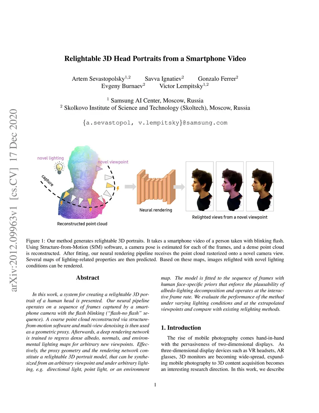 Relightable 3D Head Portraits from a Smartphone Video