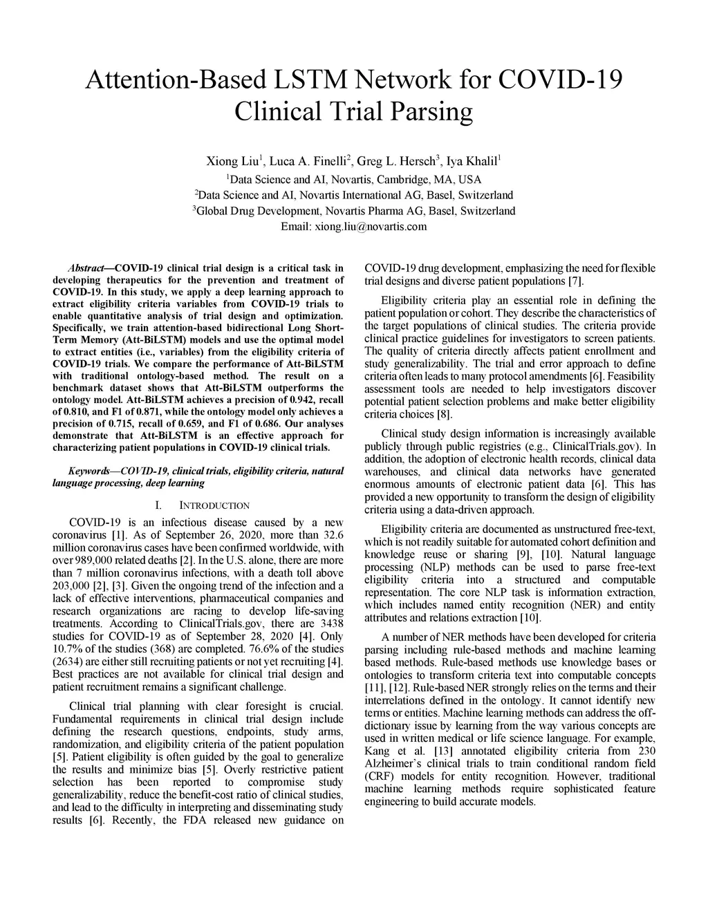 Attention-Based LSTM Network for COVID-19 Clinical Trial Parsing