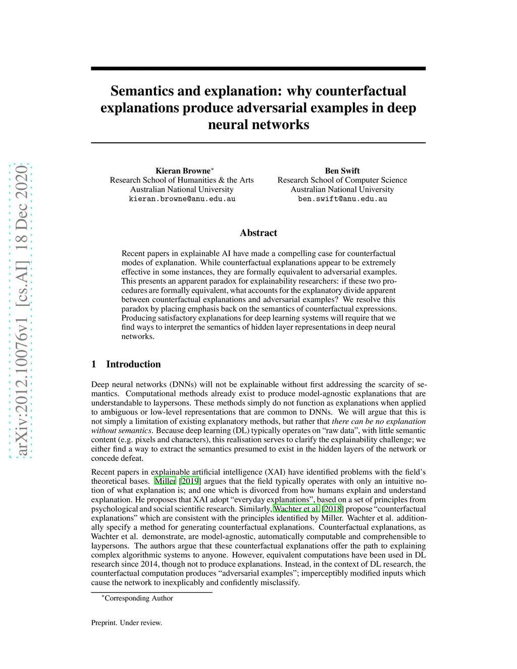 Recent papers in explainable AI have made a compelling case for counterfactual modes of explanation. While counterfactual explanations appear to be extremely effective in some instances, they are formally equivalent to adversarial examples. This presents an apparent paradox for explainability researchers: if these two procedures are formally equivalent, what accounts for the explanatory divide apparent between counterfactual explanations and adversarial examples? We resolve this paradox by placing emphasis back on the semantics of counterfactual expressions. Producing satisfactory explanations for deep learning systems will require that we find ways to interpret the semantics of hidden layer representations in deep neural networks.