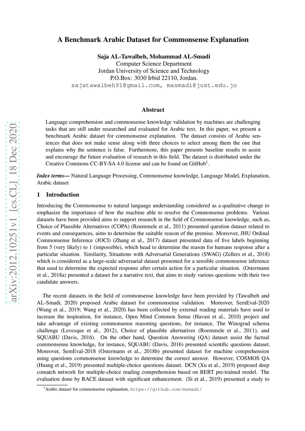 A Benchmark Arabic Dataset for Commonsense Explanation