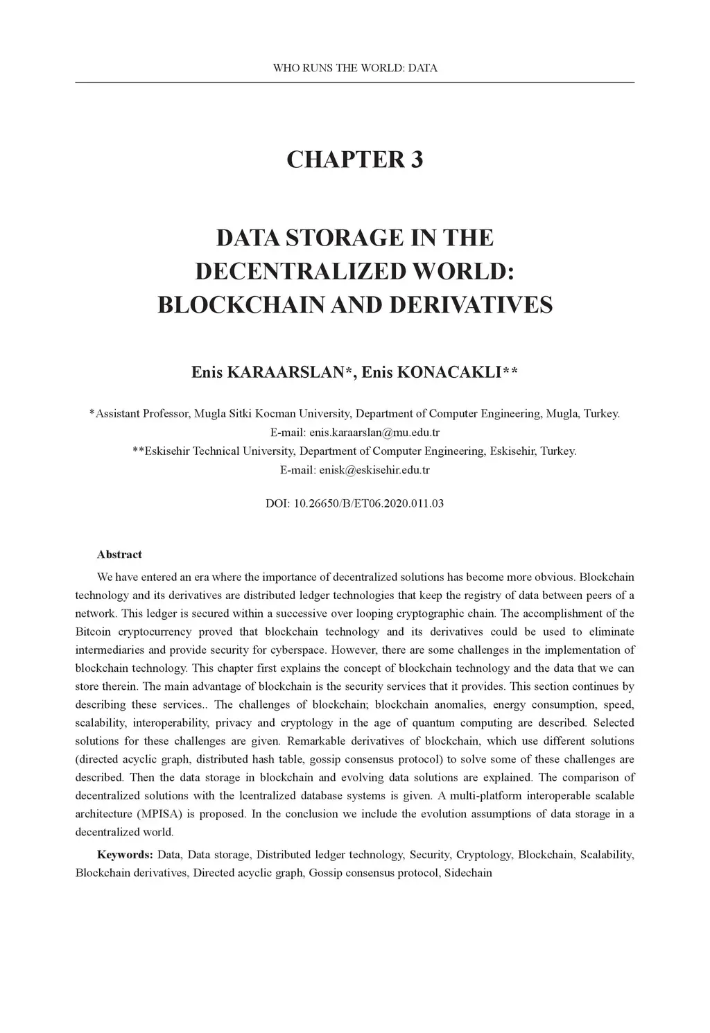 We have entered an era where the importance of decentralized solutions has become more obvious. Blockchain technology and its derivatives are distributed ledger technologies that keep the registry of data between peers of a network. This ledger is secured within a successive over looping cryptographic chain. The accomplishment of the Bitcoin cryptocurrency proved that blockchain technology and its derivatives could be used to eliminate intermediaries and provide security for cyberspace. However, there are some challenges in the implementation of blockchain technology. This chapter first explains the concept of blockchain technology and the data that we can store therein. The main advantage of blockchain is the security services that it provides. This section continues by describing these services.. The challenges of blockchain; blockchain anomalies, energy consumption, speed, scalability, interoperability, privacy and cryptology in the age of quantum computing are described. Selected solutions for these challenges are given. Remarkable derivatives of blockchain, which use different solutions (directed acyclic graph, distributed hash table, gossip consensus protocol) to solve some of these challenges are described. Then the data storage in blockchain and evolving data solutions are explained. The comparison of decentralized solutions with the lcentralized database systems is given. A multi-platform interoperable scalable architecture (MPISA) is proposed. In the conclusion we include the evolution assumptions of data storage in a decentralized world.