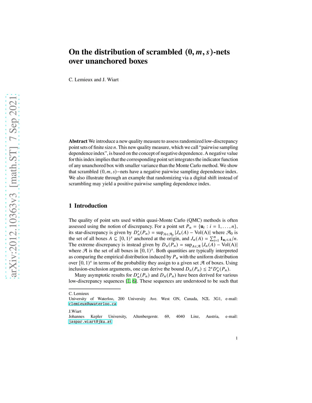We introduce a new quality measure to assess randomized low-discrepancy point sets of finite size . This new quality measure, which we call "pairwise sampling dependence index", is based on the concept of negative dependence. A negative value for this index implies that the corresponding point set integrates the indicator function of any unanchored box with smaller variance than the Monte Carlo method. We show that scrambled nets have a negative pairwise sampling dependence index. We also illustrate through an example that randomizing via a digital shift instead of scrambling may yield a positive pairwise sampling dependence index.