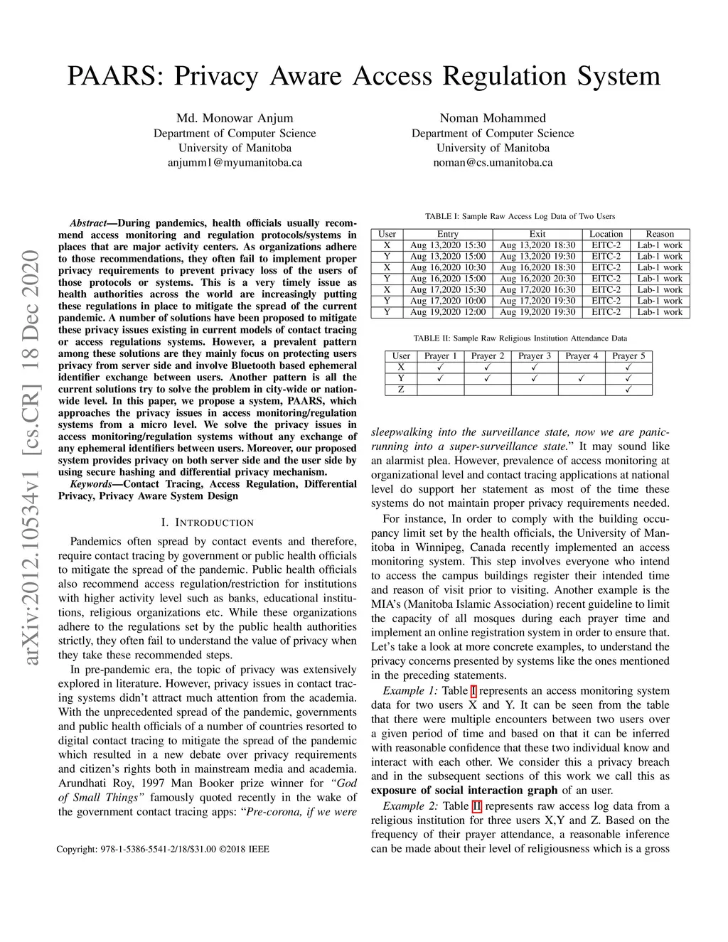 During pandemics, health officials usually recommend access monitoring and regulation protocols/systems in places that are major activity centres. As organizations adhere to those recommendations, they often fail to implement proper privacy requirements to prevent privacy loss of the users of those protocols or systems. This is a very timely issue as health authorities across the world are increasingly putting these regulations in place to mitigate the spread of the current pandemic. A number of solutions have been proposed to mitigate these privacy issues existing in current models of contact tracing or access regulations systems. However, a prevalent pattern among these solutions are they mainly focus on protecting users privacy from server side and involve Bluetooth based ephemeral identifier exchange between users. Another pattern is all the current solutions try to solve the problem in city-wide or nation-wide level. In this paper, we propose a system, PAARS, which approaches the privacy issues in access monitoring/regulation systems from a micro level. We solve the privacy issues in access monitoring/regulation systems without any exchange of any ephemeral identifiers between users. Moreover, our proposed system provides privacy on both server side and the user side by using secure hashing and differential privacy mechanism.