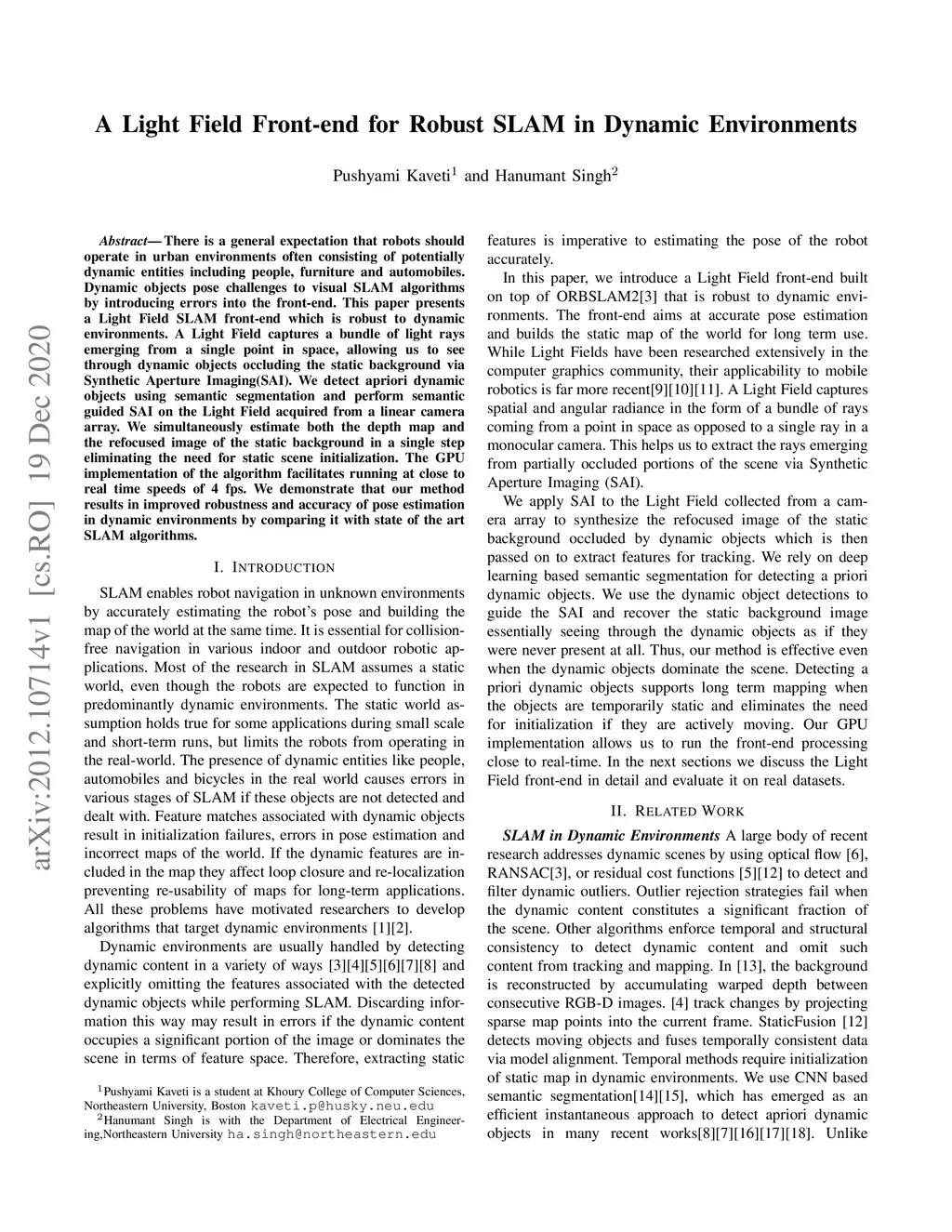 A Light Field Front-end for Robust SLAM in Dynamic Environments