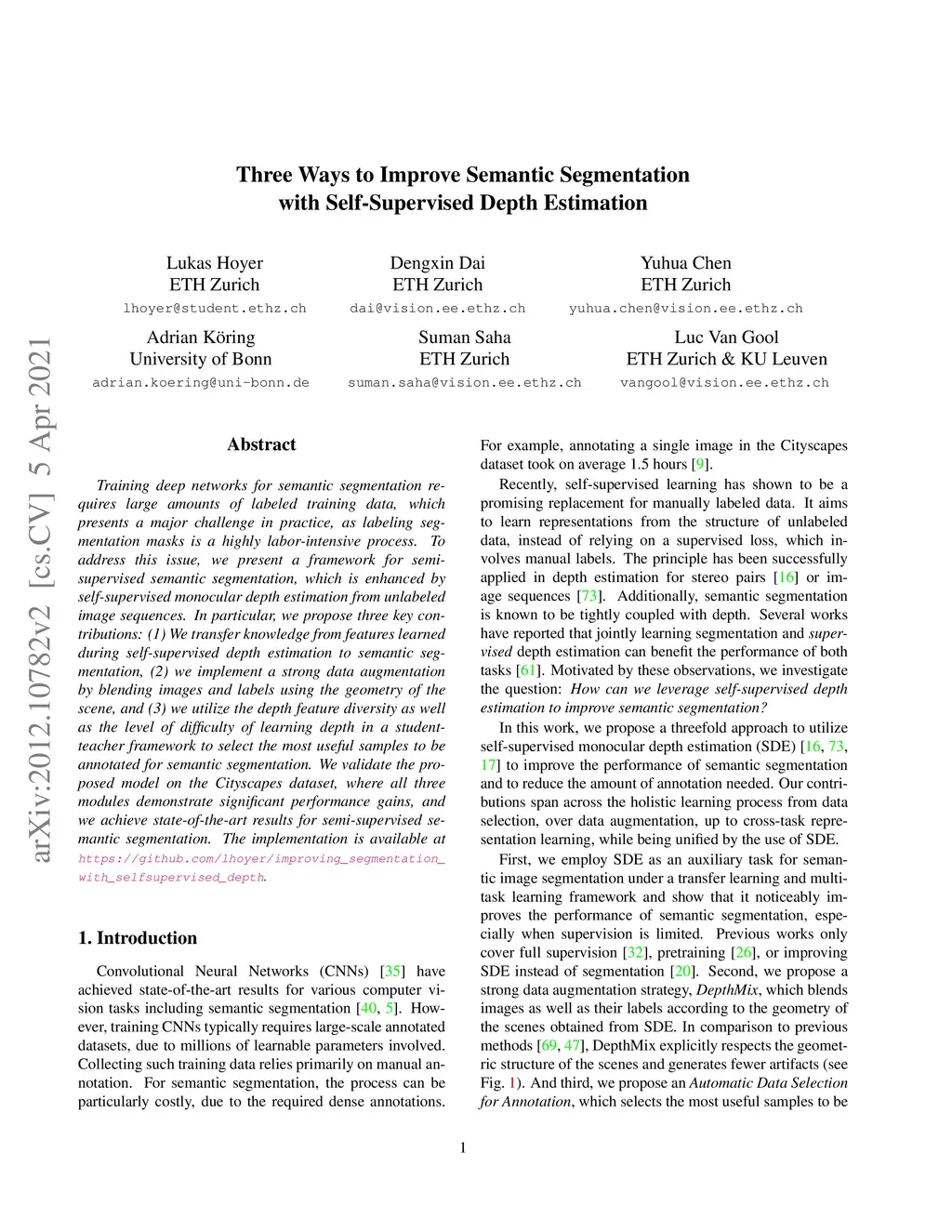 Three Ways to Improve Semantic Segmentation with Self-Supervised Depth