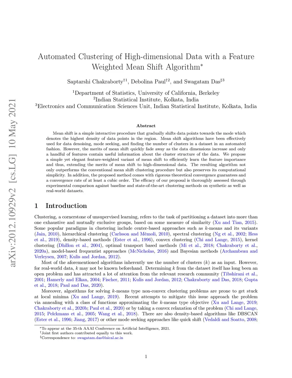 Automated Clustering of High-dimensional Data with a Feature Weighted