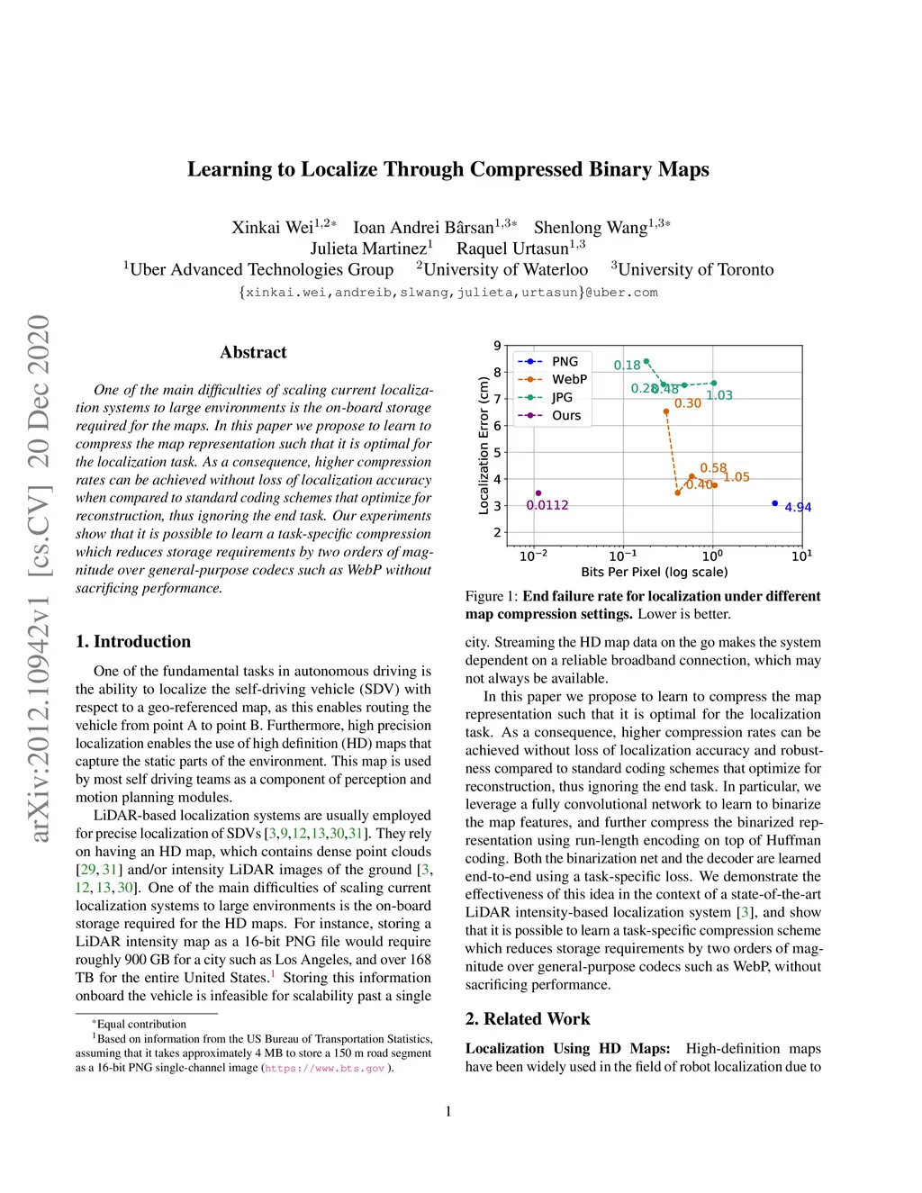 Learning to Localize Through Compressed Binary Maps