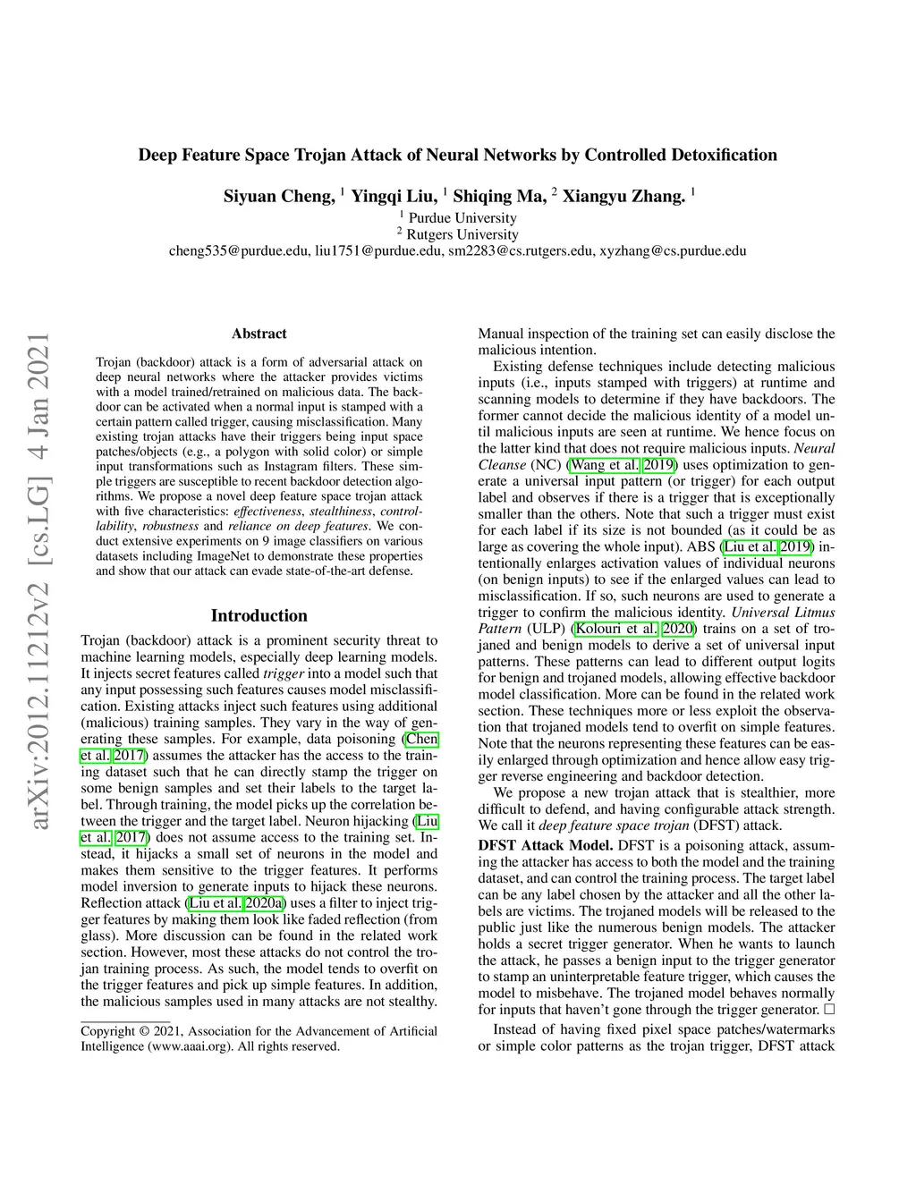 Deep Feature Space Trojan Attack of Neural Networks by Controlled
