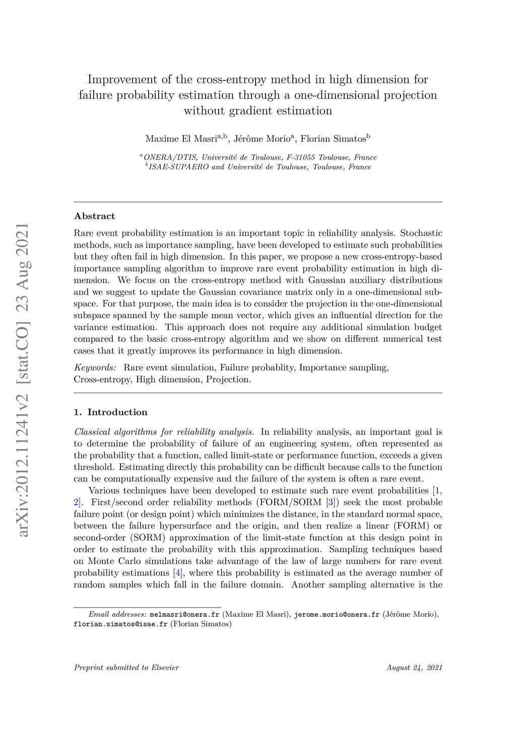 Rare event probability estimation is an important topic in reliability analysis. Stochastic methods, such as importance sampling, have been developed to estimate such probabilities but they often fail in high dimension. In this paper, we propose a new cross-entropy-based importance sampling algorithm to improve rare event probability estimation in high dimension. We focus on the cross-entropy method with Gaussian auxiliary distributions and we suggest to update the Gaussian covariance matrix only in a one-dimensional subspace. For that purpose, the main idea is to consider the projection in the one-dimensional subspace spanned by the sample mean vector, which gives an influential direction for the variance estimation. This approach does not require any additional simulation budget compared to the basic cross-entropy algorithm and we show on different numerical test cases that it greatly improves its performance in high dimension.