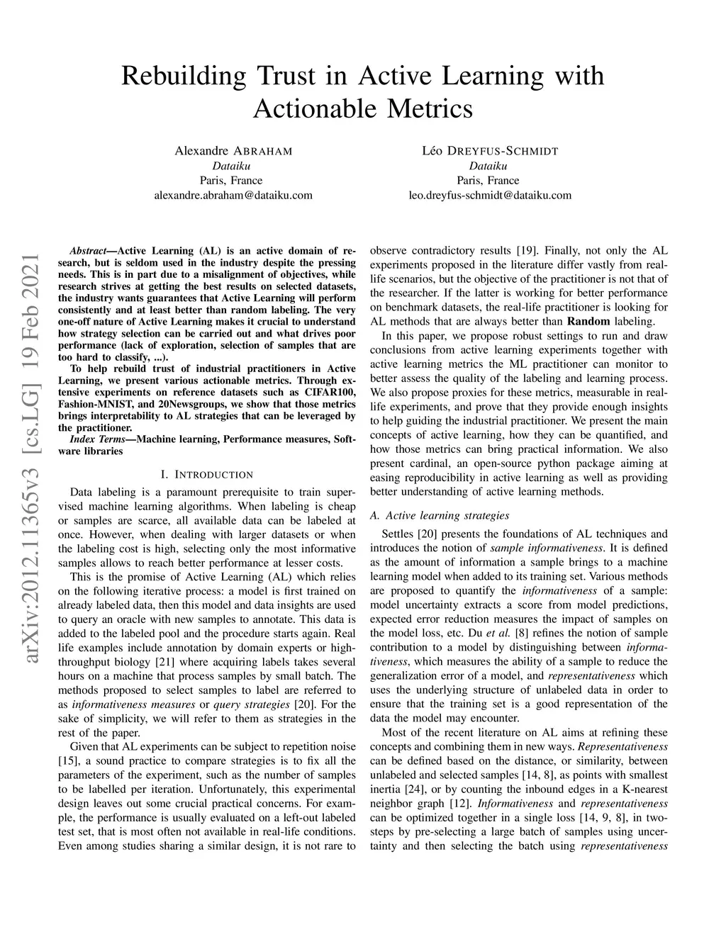 Active Learning (AL) is an active domain of research, but is seldom used in the industry despite the pressing needs. This is in part due to a misalignment of objectives, while research strives at getting the best results on selected datasets, the industry wants guarantees that Active Learning will perform consistently and at least better than random labeling. The very one-off nature of Active Learning makes it crucial to understand how strategy selection can be carried out and what drives poor performance (lack of exploration, selection of samples that are too hard to classify, ...). To help rebuild trust of industrial practitioners in Active Learning, we present various actionable metrics. Through extensive experiments on reference datasets such as CIFAR100, Fashion-MNIST, and 20Newsgroups, we show that those metrics brings interpretability to AL strategies that can be leveraged by the practitioner.
