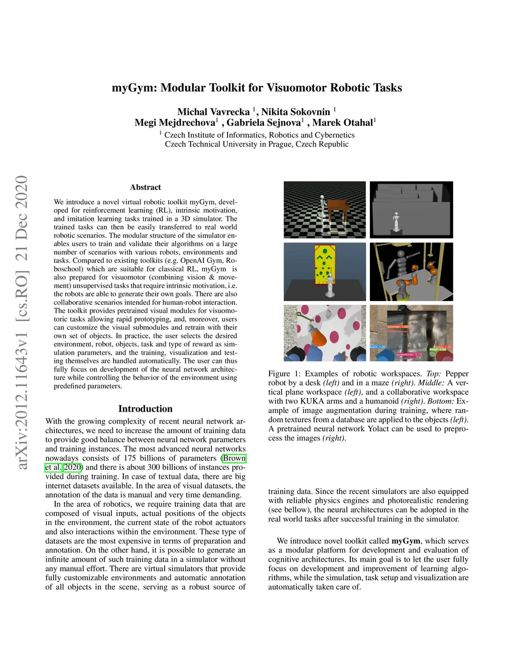 myGym: Modular Toolkit for Visuomotor Robotic Tasks