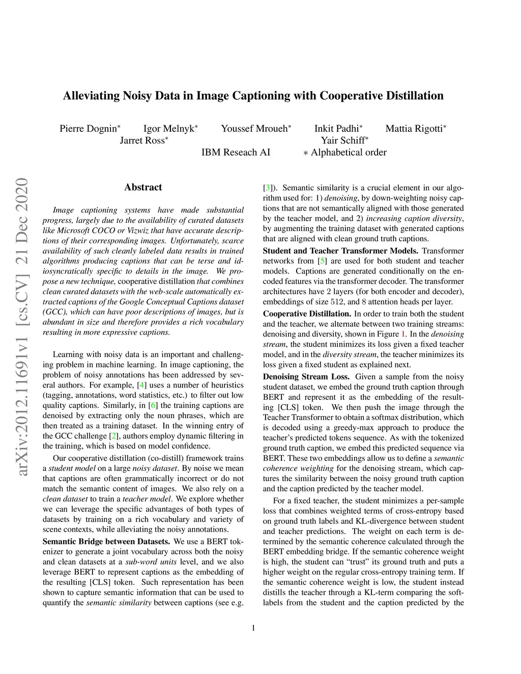 Alleviating Noisy Data in Image Captioning with Cooperative Distillation