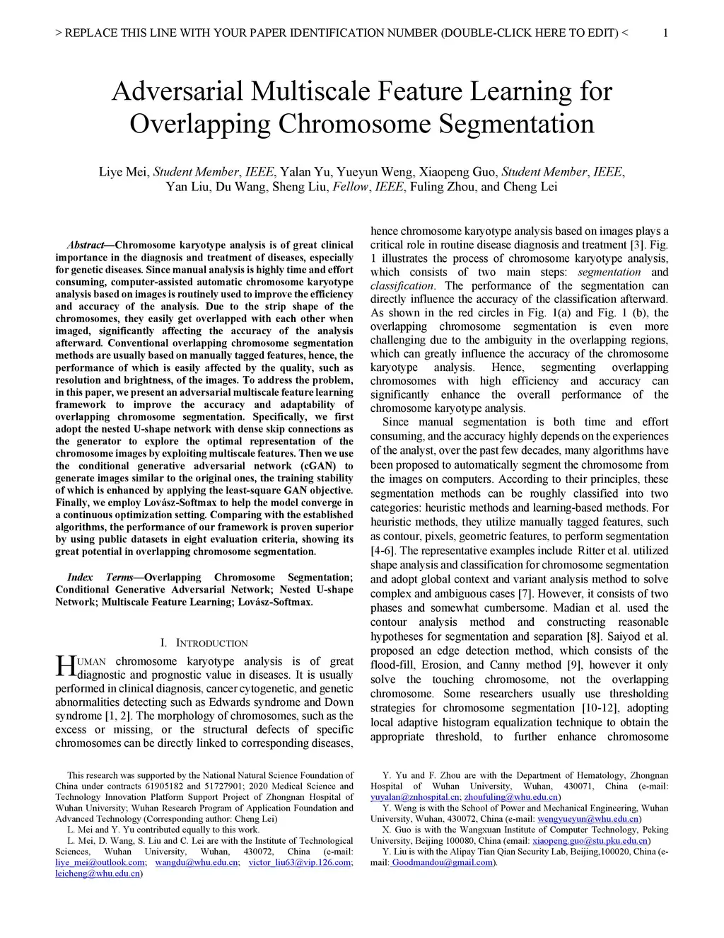 Adversarial Multiscale Feature Learning for Overlapping Chromosome