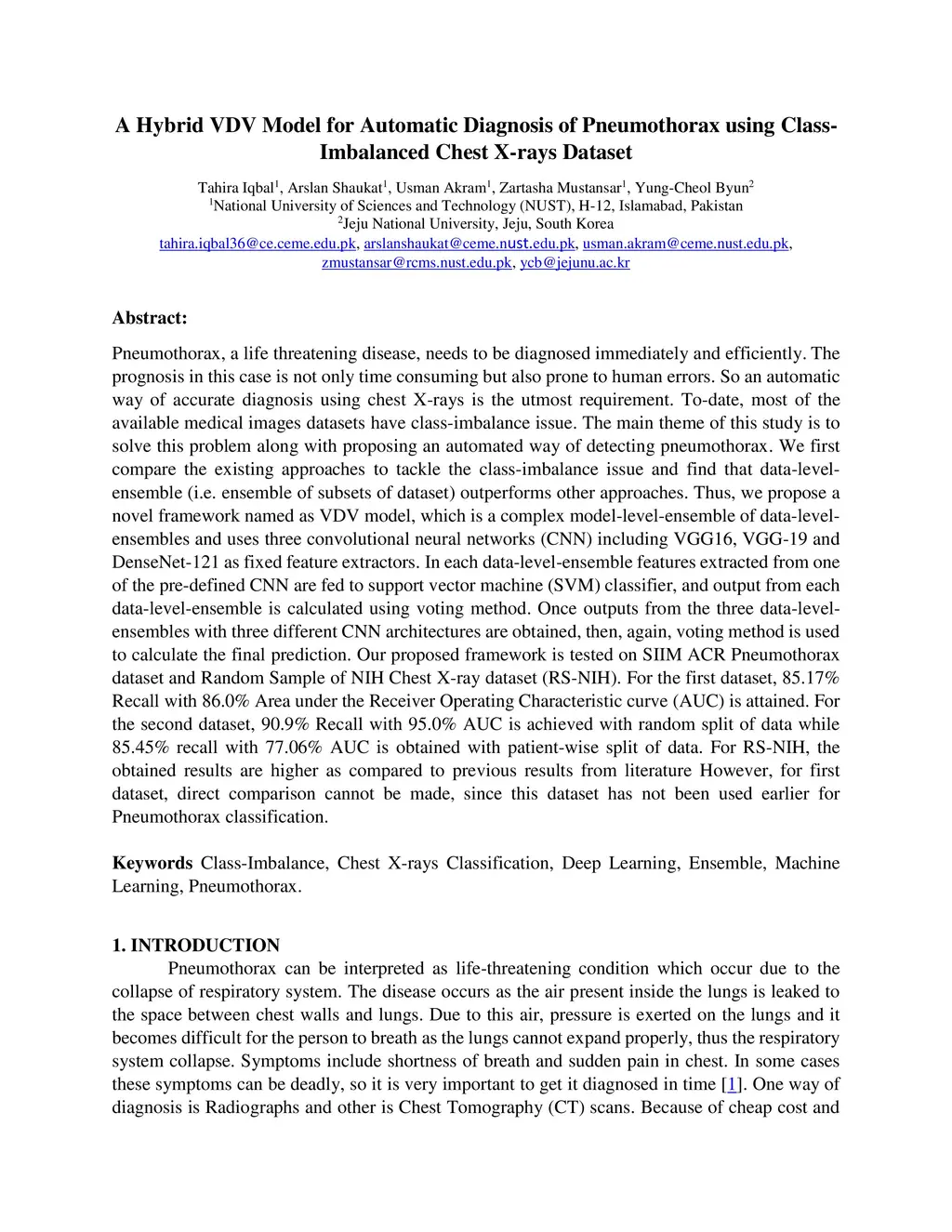 A Hybrid VDV Model for Automatic Diagnosis of Pneumothorax using