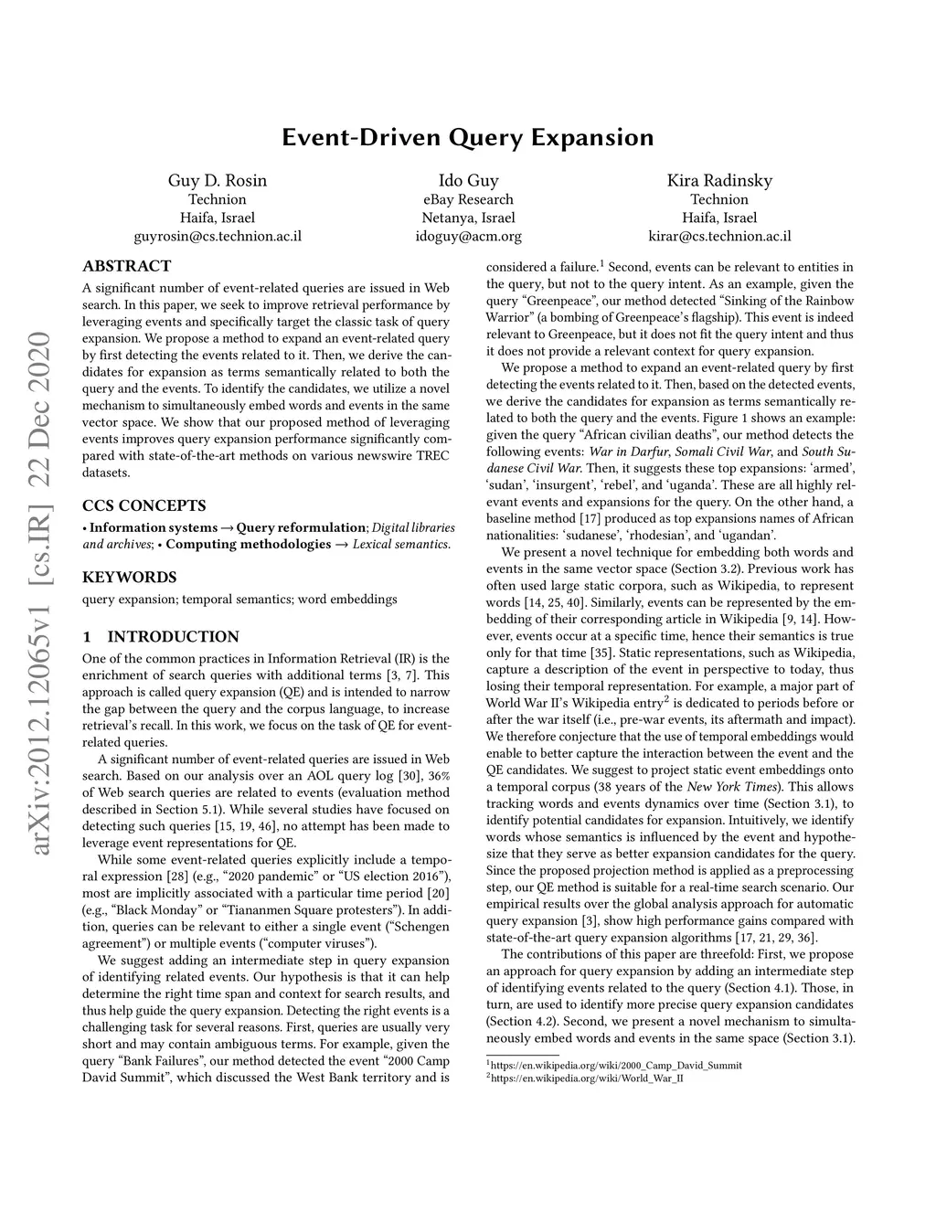 A significant number of event-related queries are issued in Web search. In this paper, we seek to improve retrieval performance by leveraging events and specifically target the classic task of query expansion. We propose a method to expand an event-related query by first detecting the events related to it. Then, we derive the candidates for expansion as terms semantically related to both the query and the events. To identify the candidates, we utilize a novel mechanism to simultaneously embed words and events in the same vector space. We show that our proposed method of leveraging events improves query expansion performance significantly compared with state-of-the-art methods on various newswire TREC datasets.