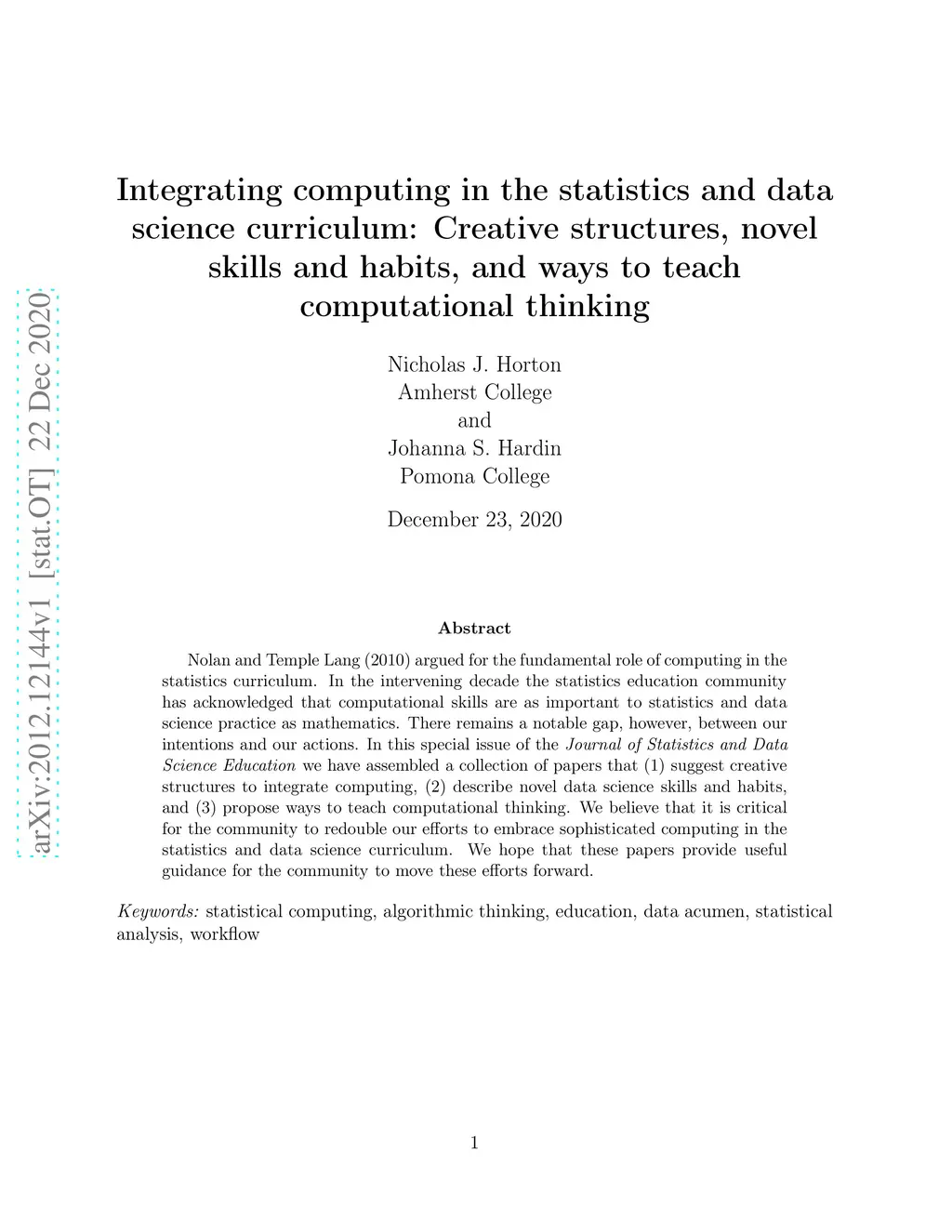 Nolan and Temple Lang (2010) argued for the fundamental role of computing in the statistics curriculum. In the intervening decade the statistics education community has acknowledged that computational skills are as important to statistics and data science practice as mathematics. There remains a notable gap, however, between our intentions and our actions. In this special issue of the *Journal of Statistics and Data Science Education* we have assembled a collection of papers that (1) suggest creative structures to integrate computing, (2) describe novel data science skills and habits, and (3) propose ways to teach computational thinking. We believe that it is critical for the community to redouble our efforts to embrace sophisticated computing in the statistics and data science curriculum. We hope that these papers provide useful guidance for the community to move these efforts forward.