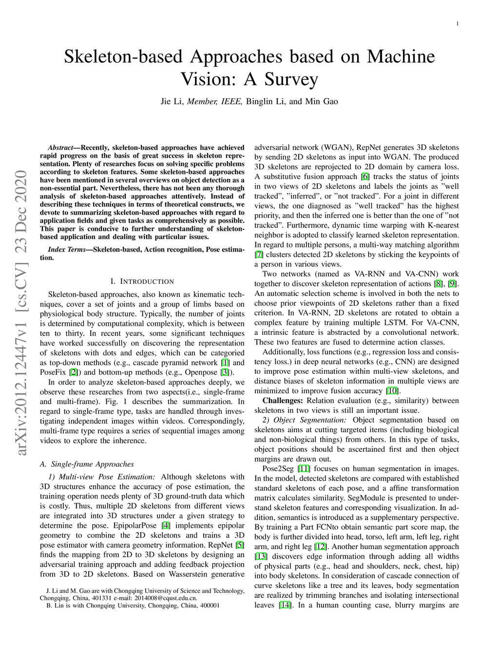 Skeleton-based Approaches based on Machine Vision: A Survey