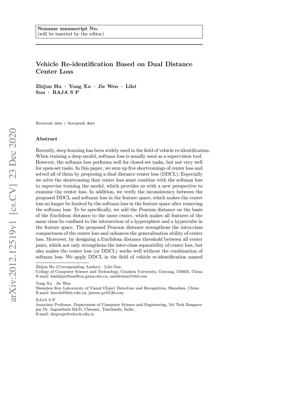 Vehicle Re-identification Based on Dual Distance Center Loss