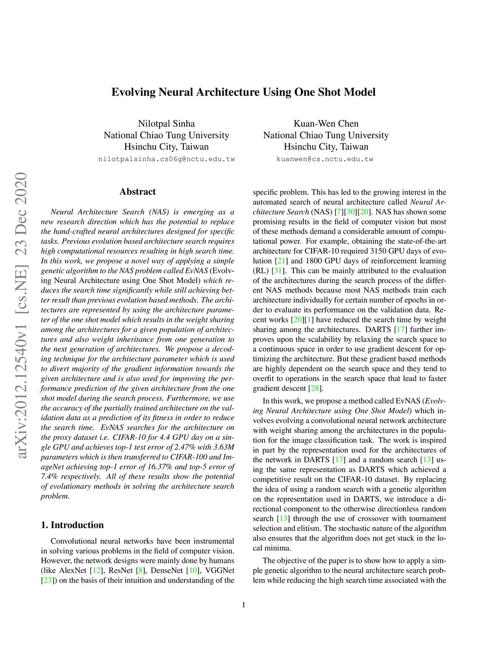 Evolving Neural Architecture Using One Shot Model