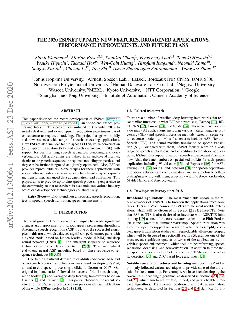 The 2020 ESPnet update: new features, broadened applications,