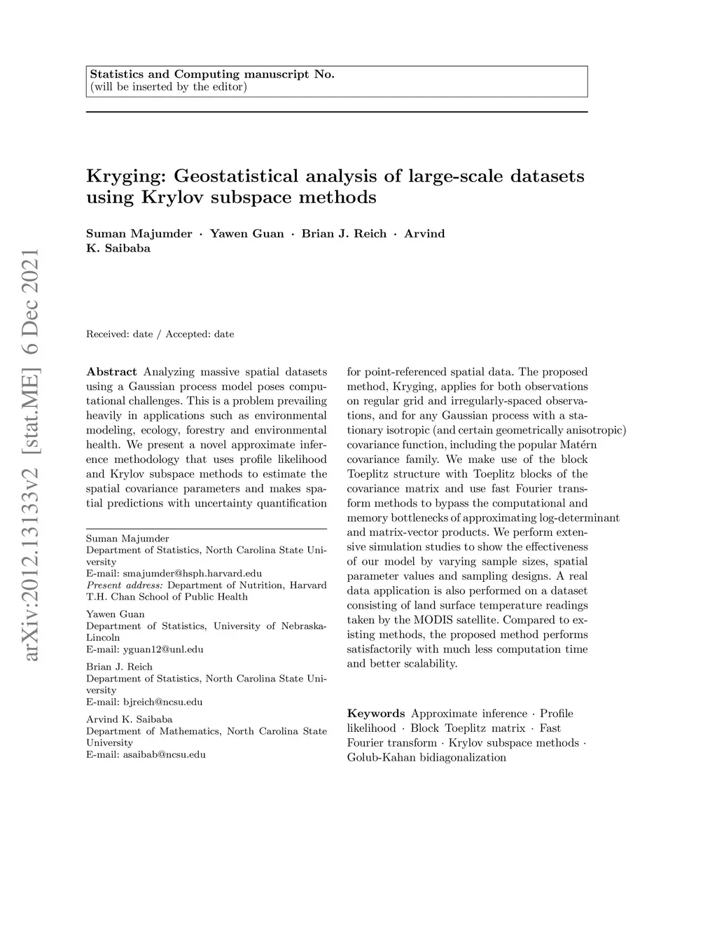 Kryging: Geostatistical analysis of large-scale datasets using Krylov